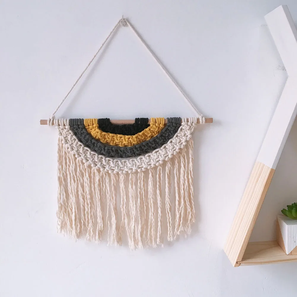 Настенный декор ручной работы из хлопковой нити, гобелен с кисточками, украшение для комнаты в богемном стиле