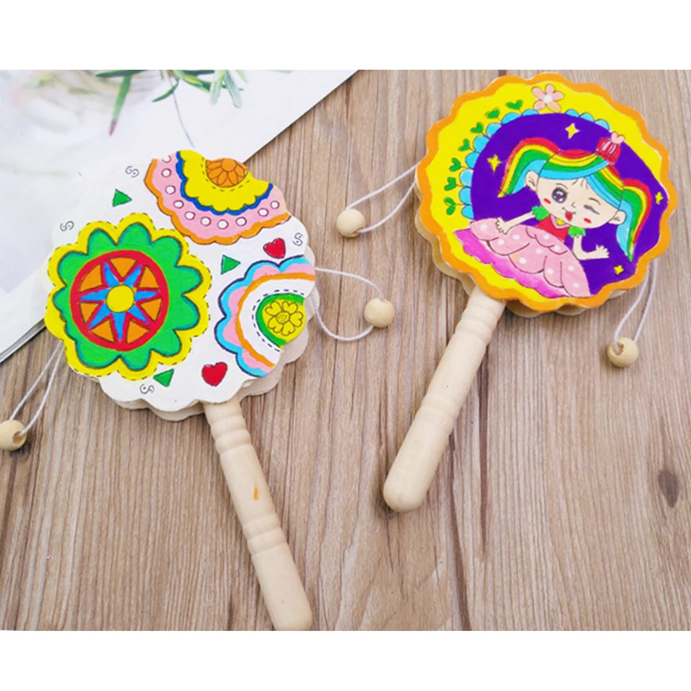Деревянные неокрашенные тряски Погремушка гранулы барабан DIY живопись ремесла дети музыкальная игрушка