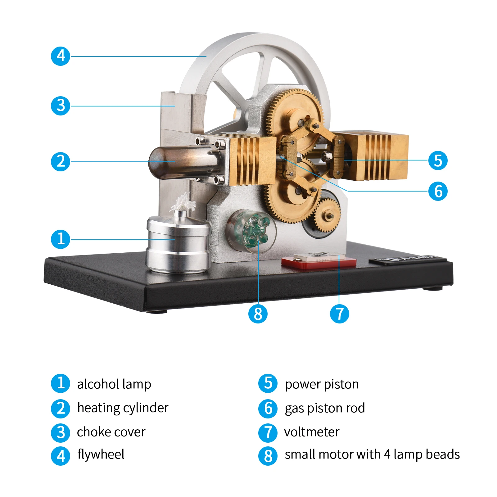This model is equipped with 4-LED generator and voltage test meter, relying on the coordination of each precision component, drive the LED motor to light up, make it run normally.