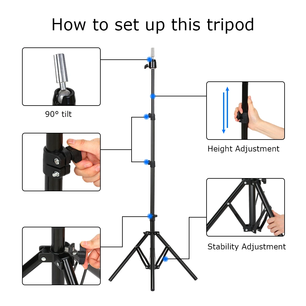 Quicker Operation: Just 2 steps, you can extend this tripod hold to maximum height. Open the tripod firstly and then rotate the screw, adjust the height at your own will.