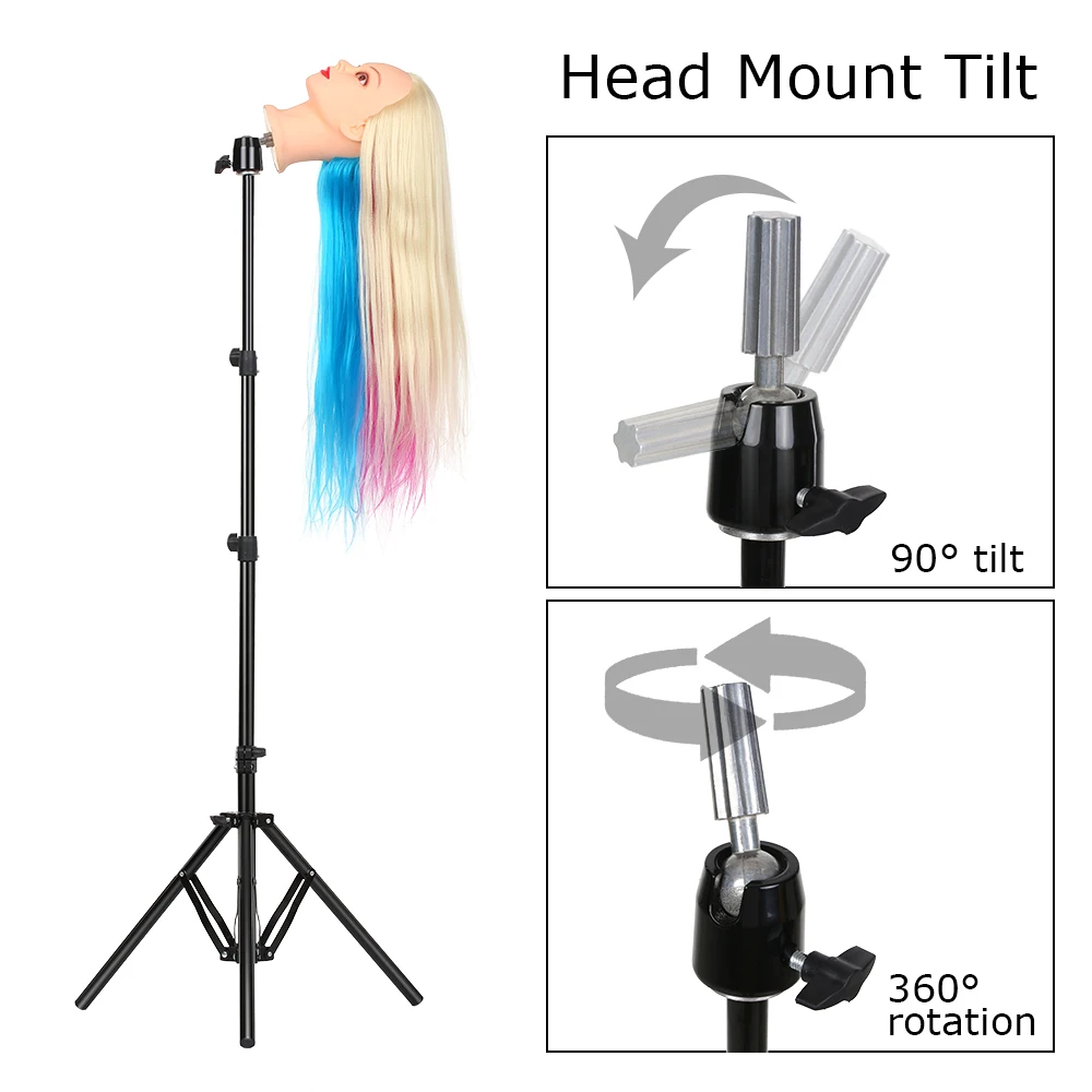 Adjustable Height: The tripod's height is from 35.43in-60.23in, with 360°rotatable metal head(φ0.78in), you do not need move when you practice haircutting or hair styling, just rotate to any possible angles you desired.