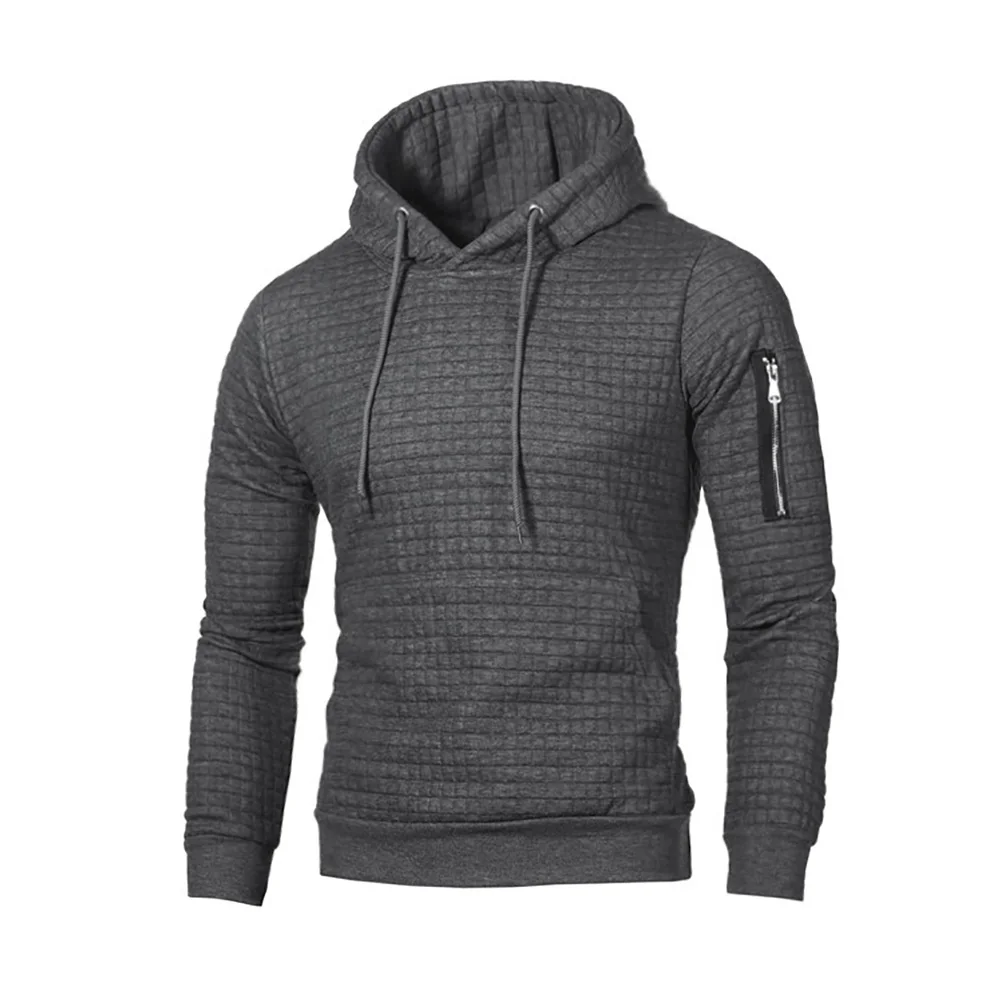 Мужской однотонный жаккардовый теплый пуловер с длинными рукавами, Спортивная толстовка с капюшоном, Топ