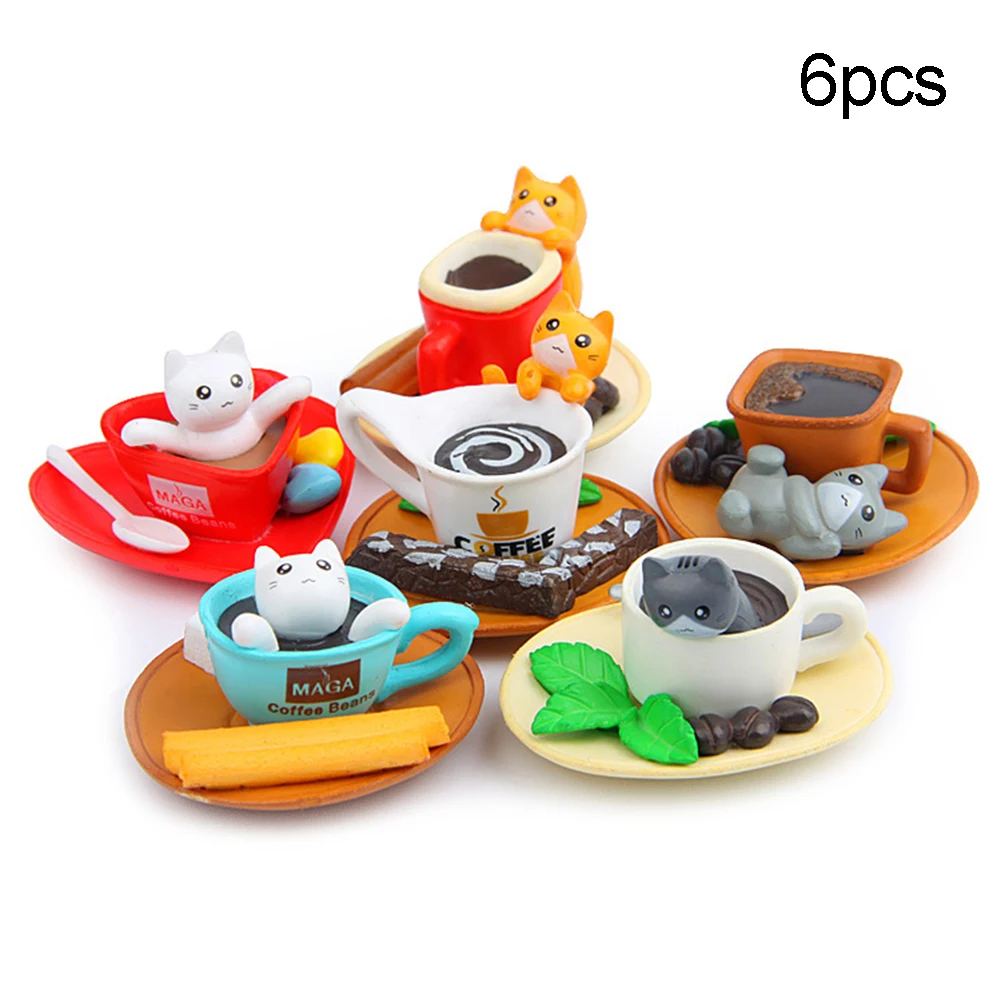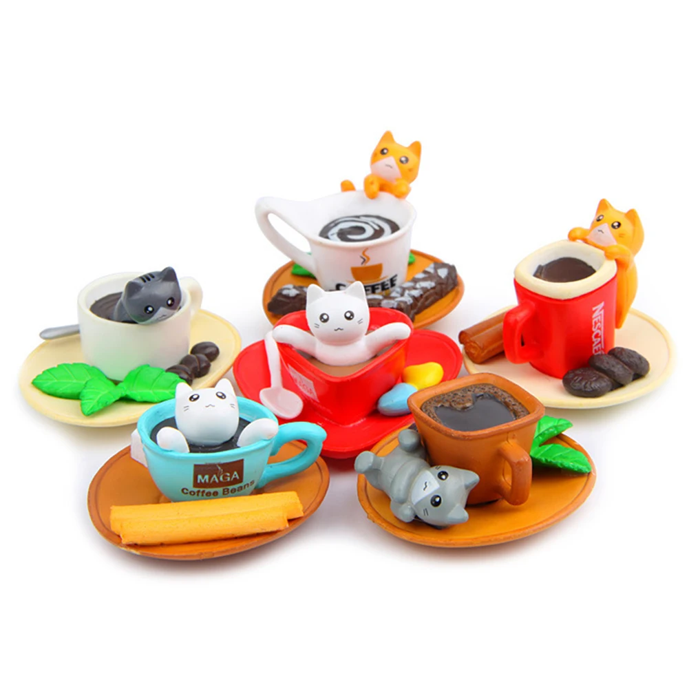 6 шт./компл. Статуэтка кофейная чашка тост кошки фигурки поделки миниатюрный Сказочный Сад Сделай Сам Ландшафтный Декор