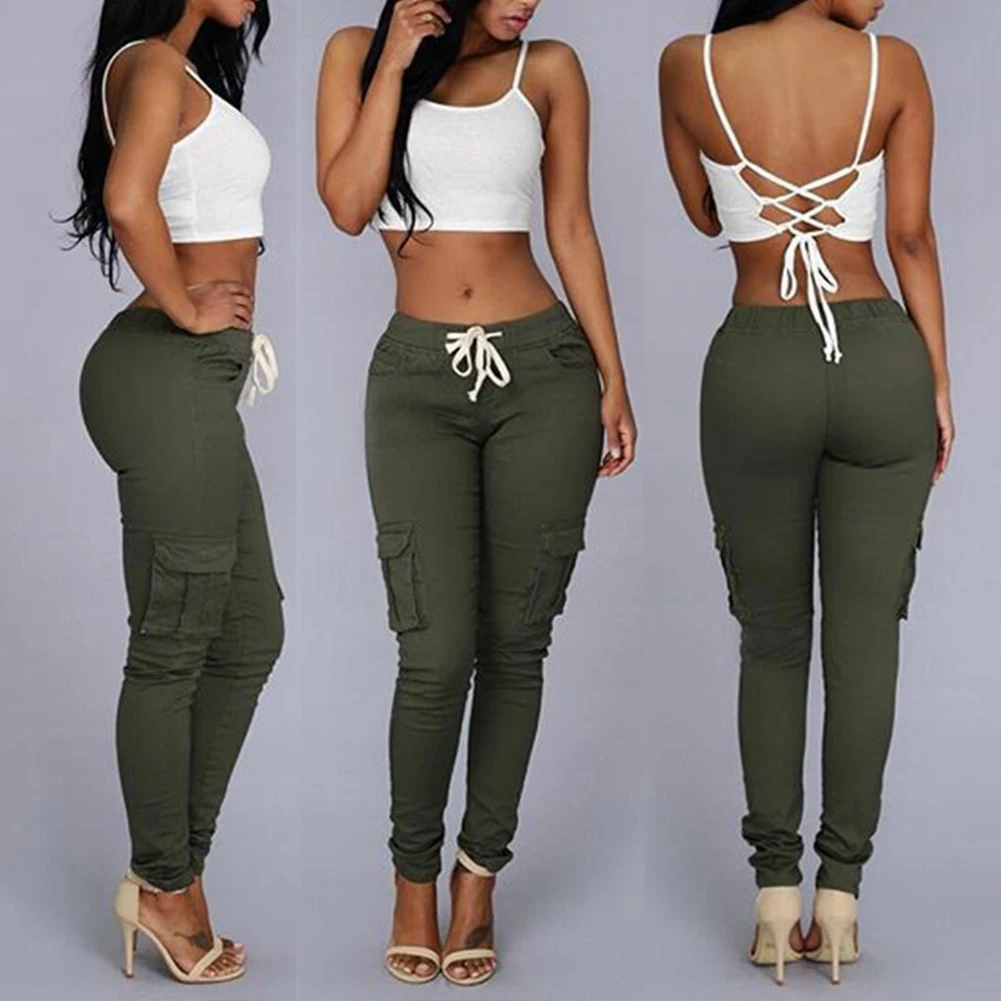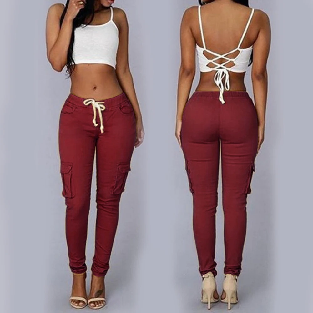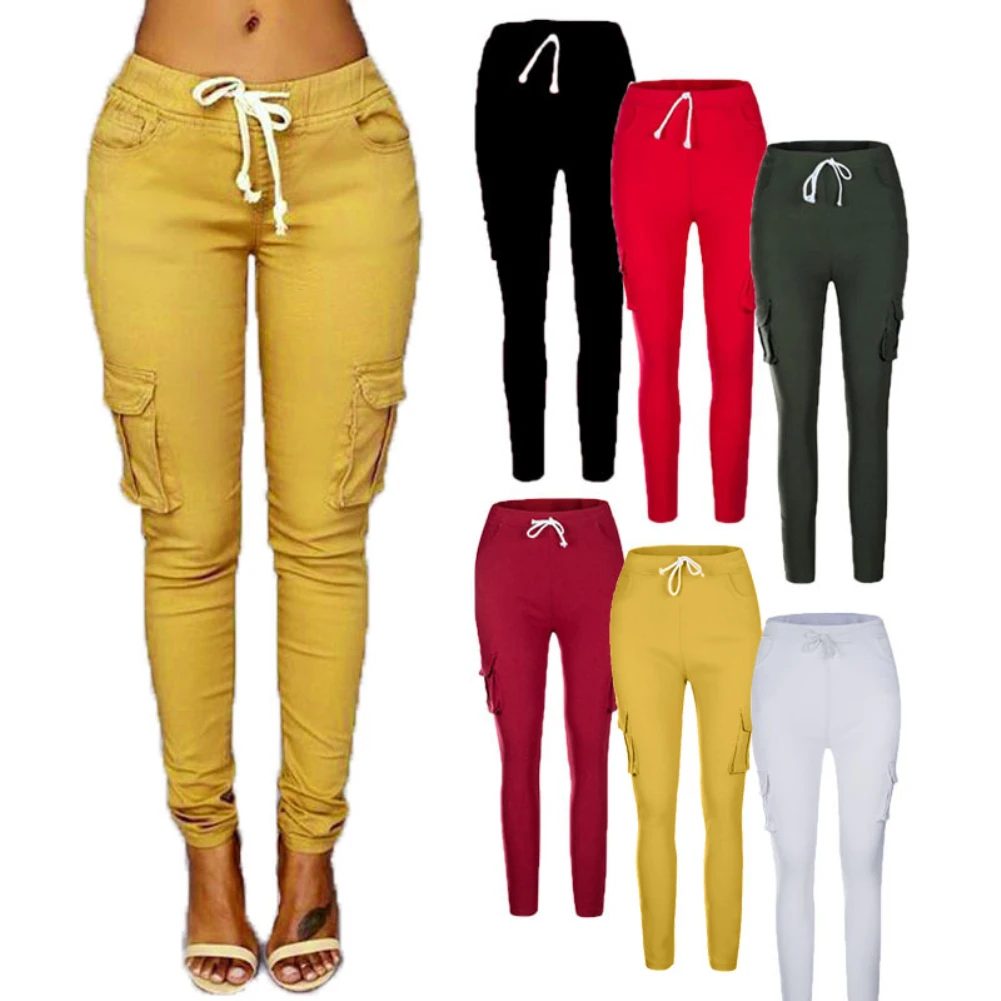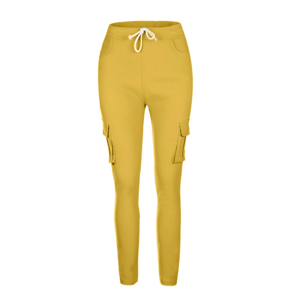 Повседневные Женские однотонные длинные брюки с карманами и завязками на талии