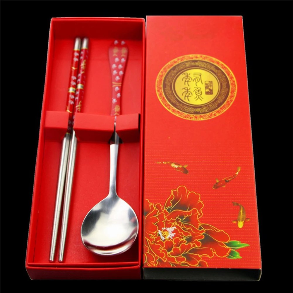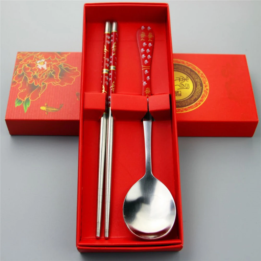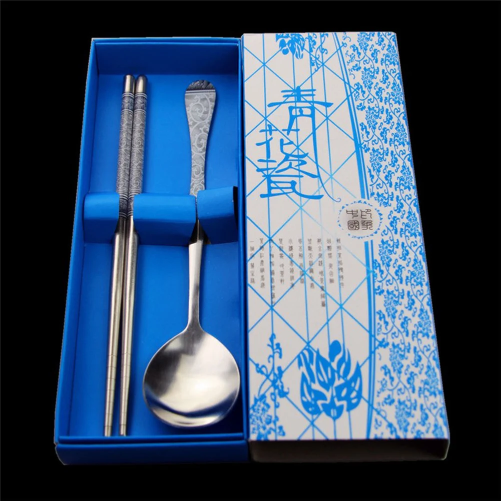 2 шт из нержавеющей стали синий и белый фарфор палочки для еды ложка набор посуды