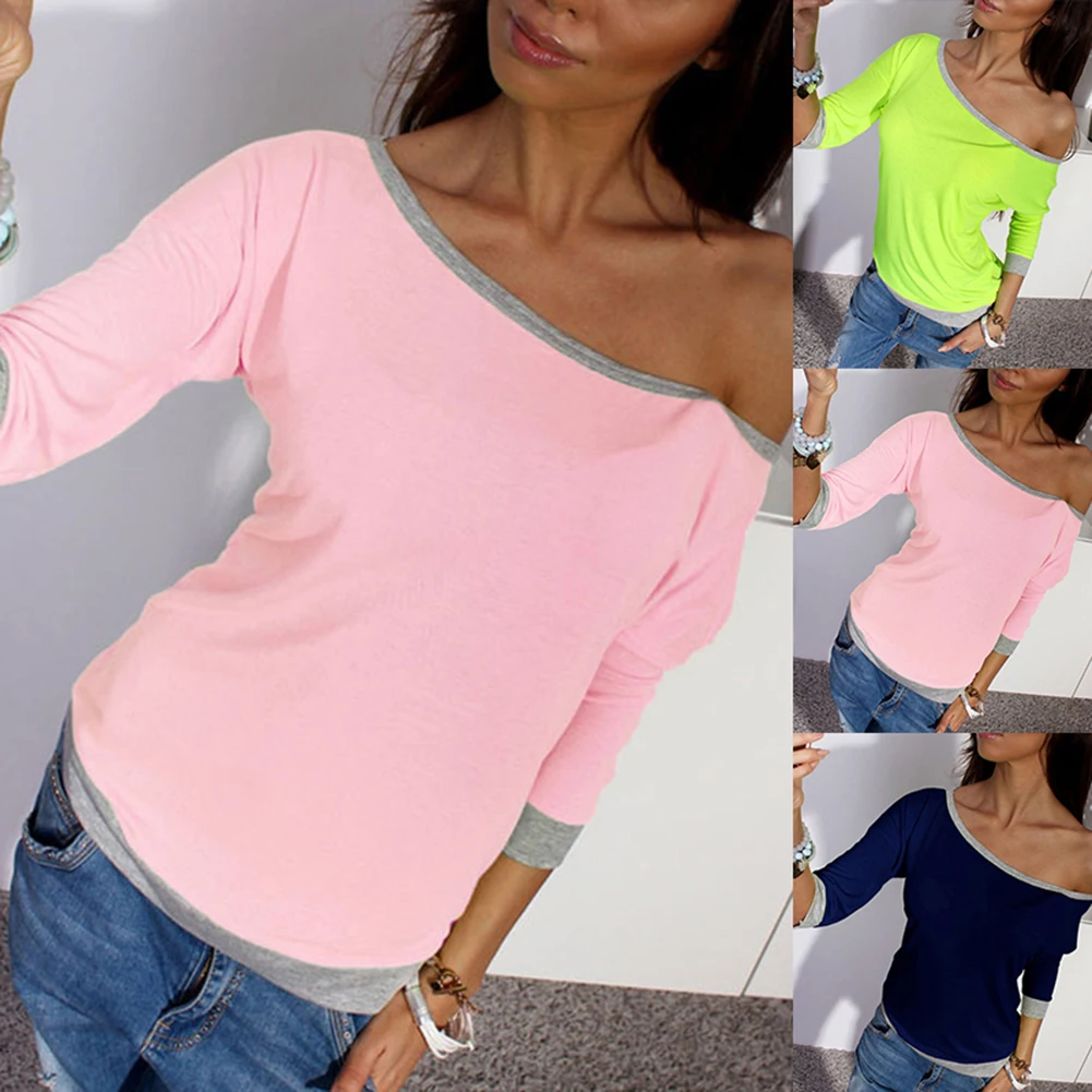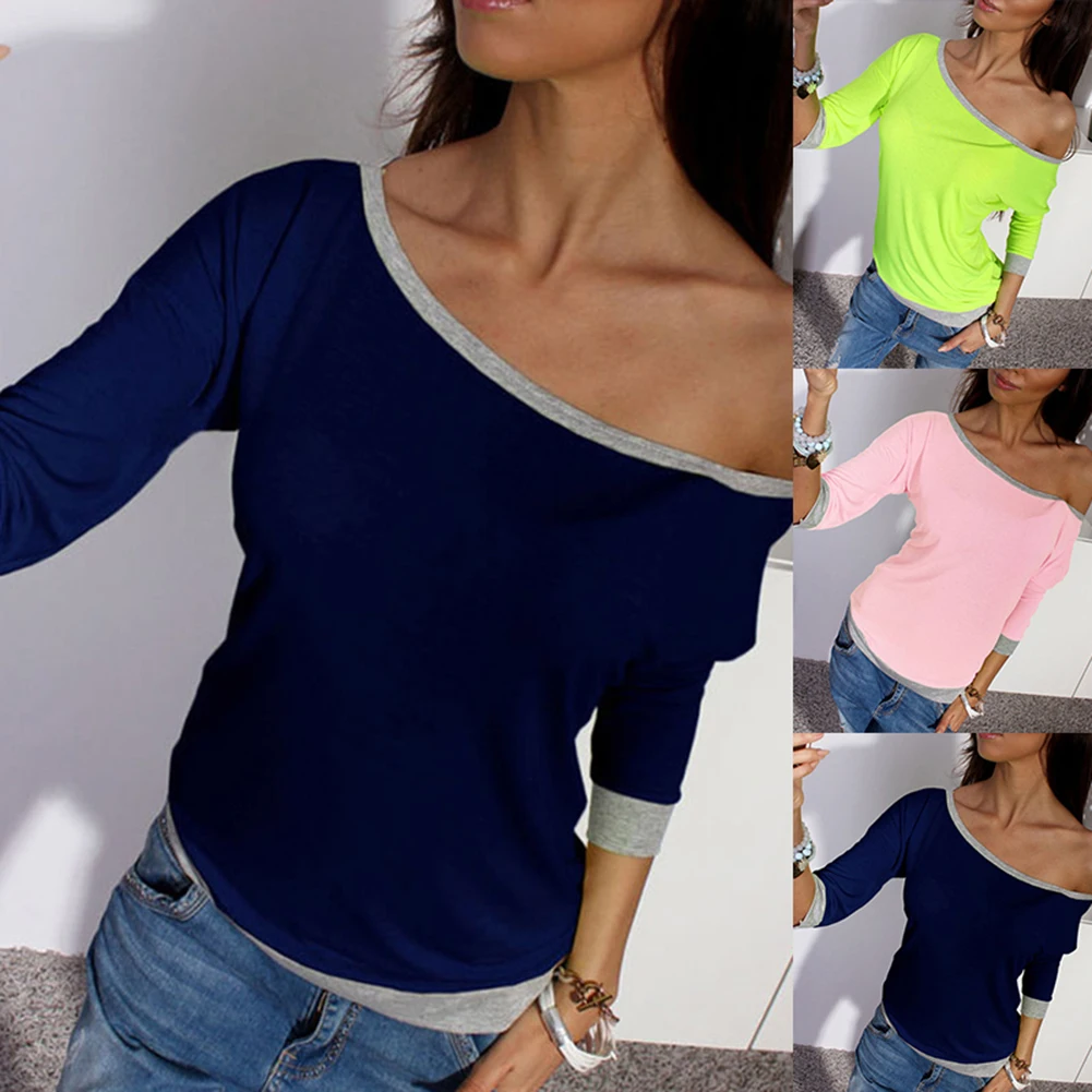 Повседневная женская футболка, осенняя Однотонная футболка с круглым вырезом на одно плечо, футболки с рукавом 3/4, хлопок, S-lim, пуловер harajuku ropa mujer