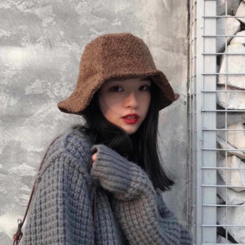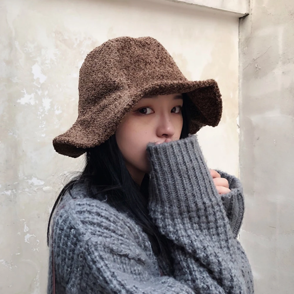 Зимняя модная женская однотонная теплая Повседневная шерстяная Панама с широкими полями