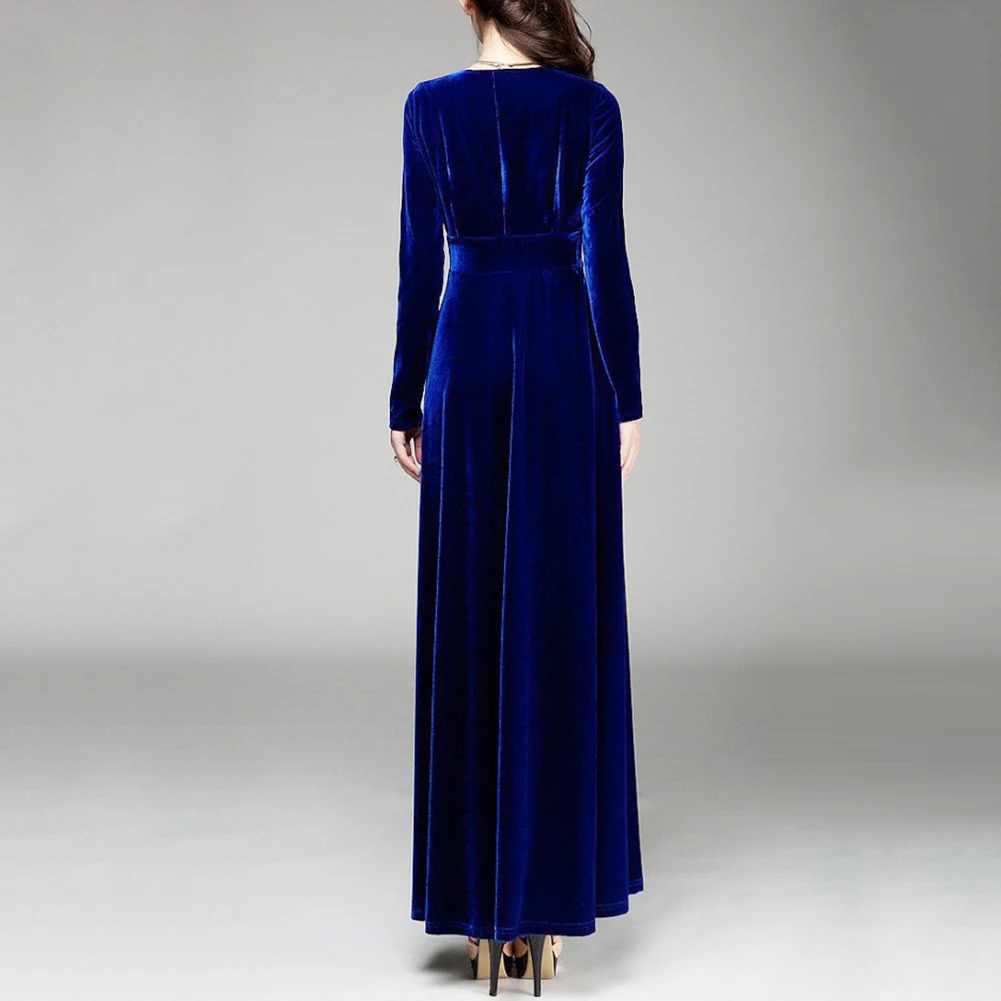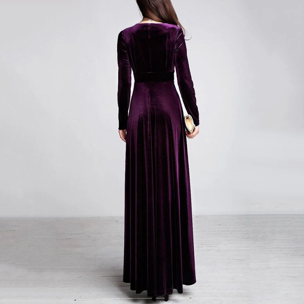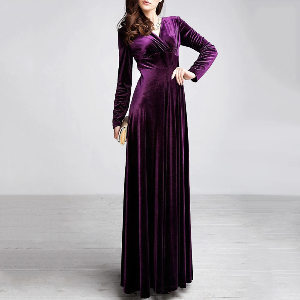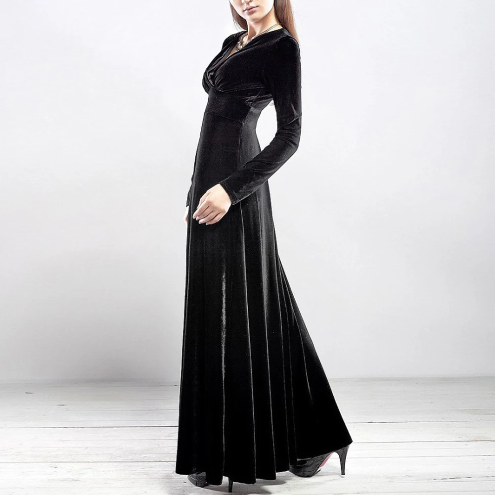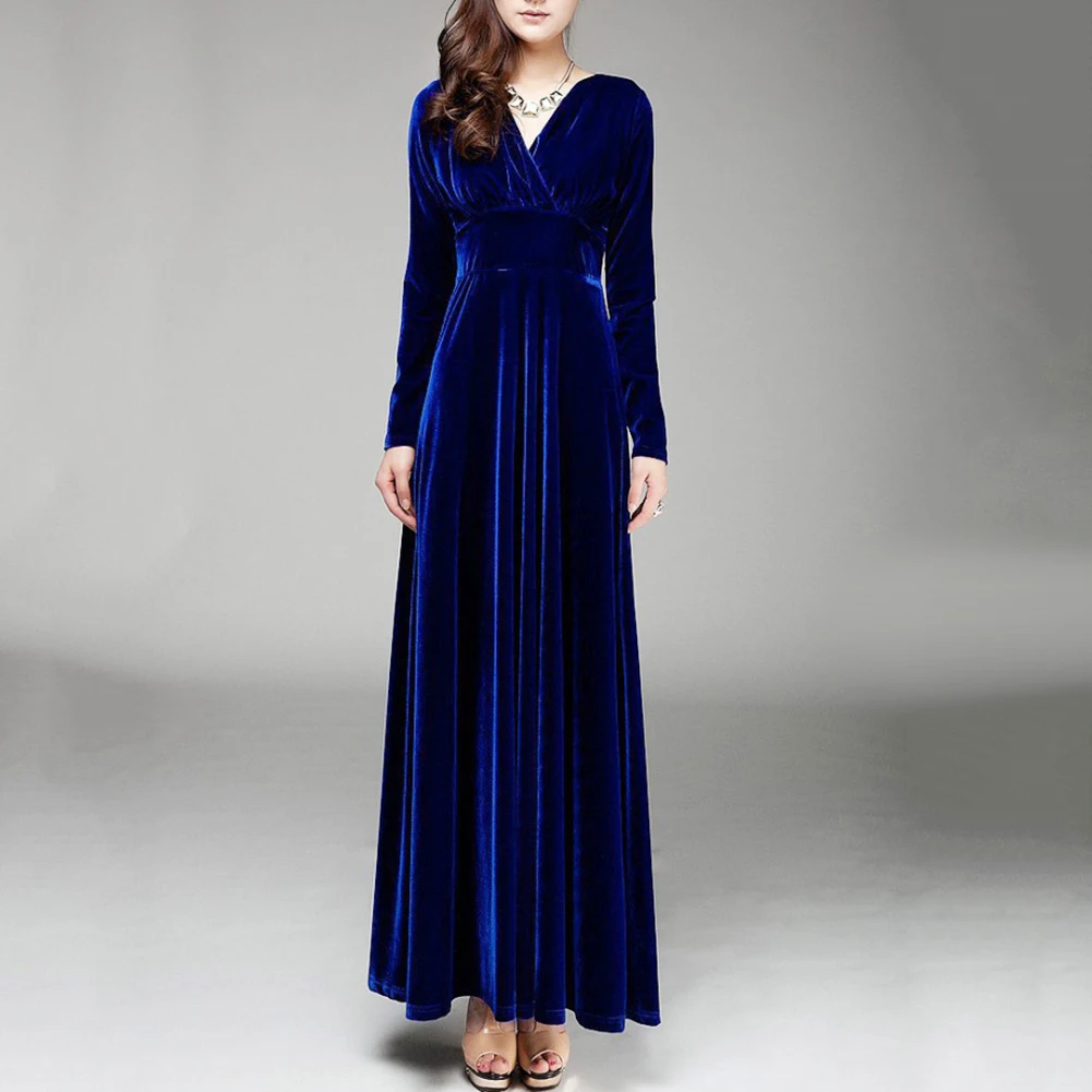 Винтажное женское осеннее Плиссированное бархатное платье макси с длинным рукавом и v-образным вырезом, вечерние платья