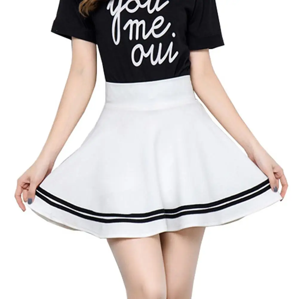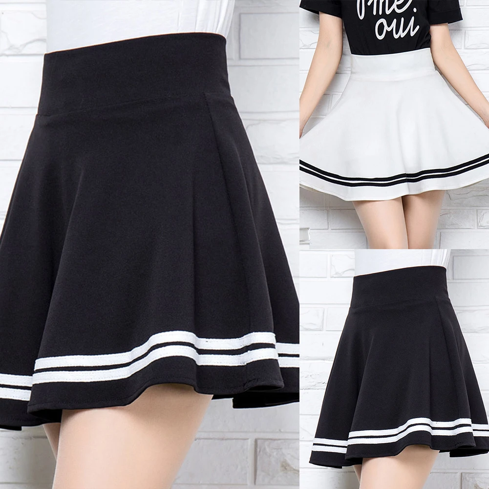 Повседневная Женская однотонная эластичная мини-юбка в полоску с высокой талией