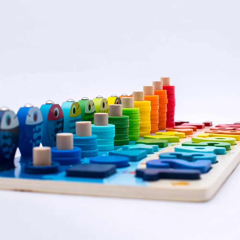 Деревянные пазлы-цифры 4 в 1, сортировщик, рыбалка, игра, обучающая детская игрушка