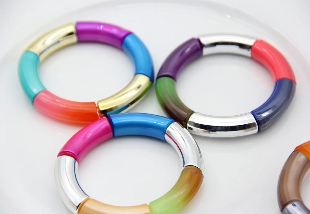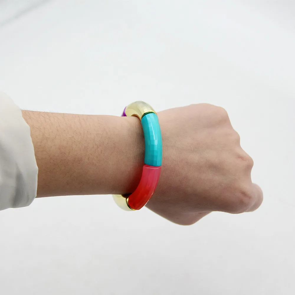 Женский браслет из акриловых бусин FishSheep, эластичный браслет с подвеской золотого цвета, браслет из смолы с изогнутыми манжетами и бусинами, модные ювелирные изделия