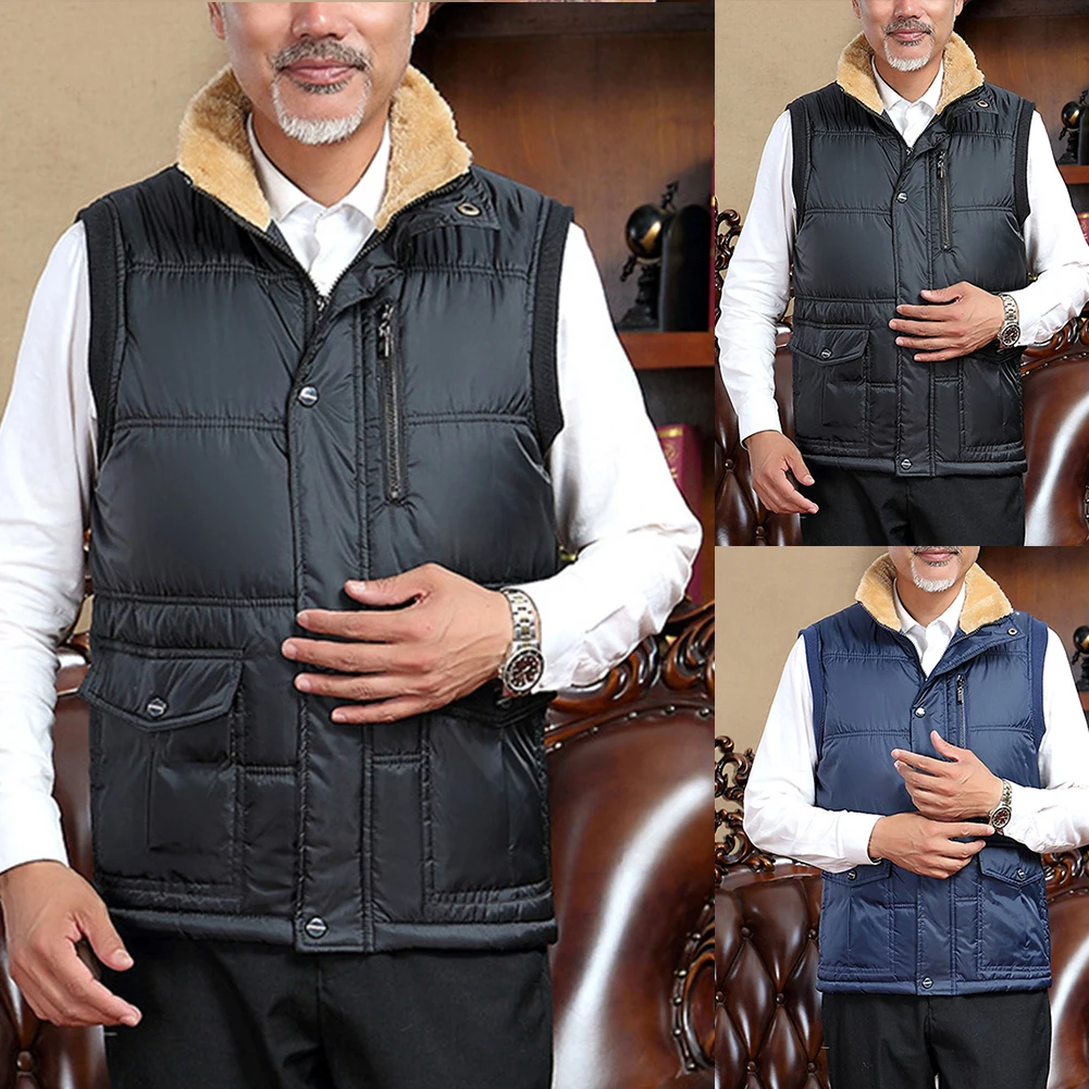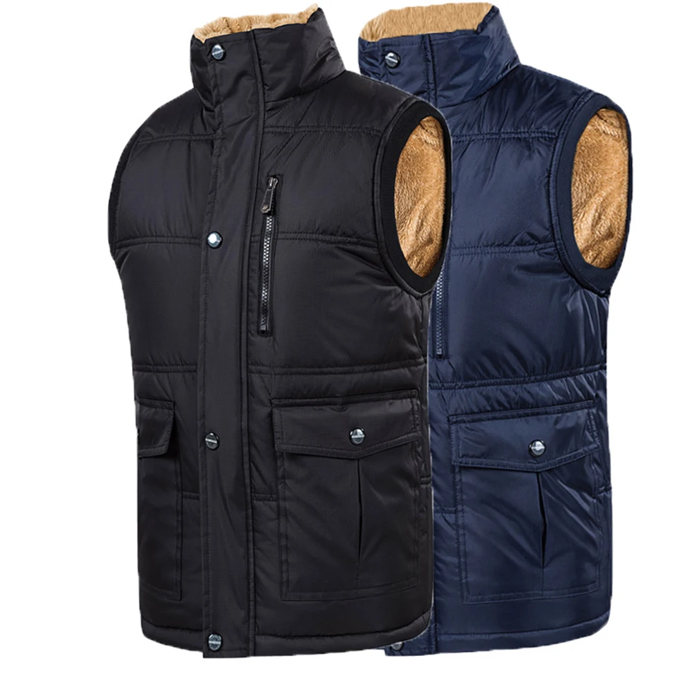 Мужской зимний теплый жилет на флисовой подкладке с застежкой-молнией размера плюс