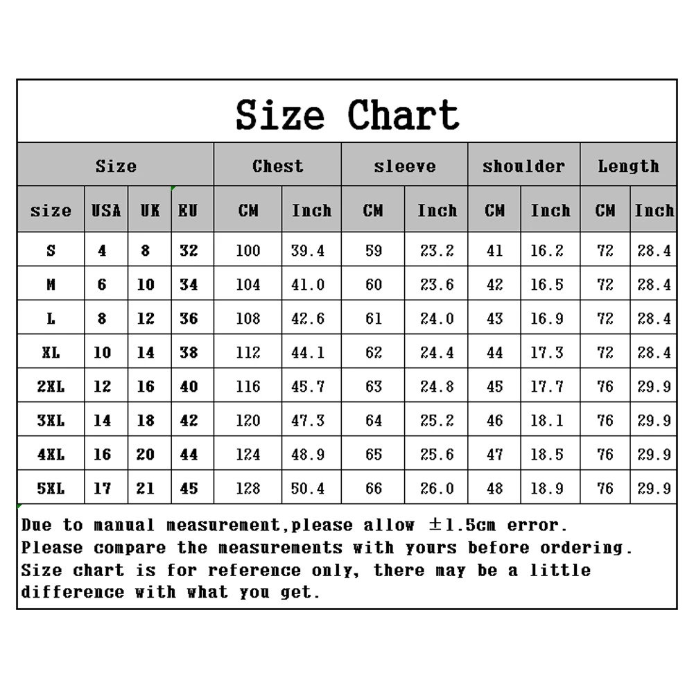 [Наши Размеры 4XL] Бюст: 124 см/48,9 ", плеча: 47 см/18,5", рукав: 65 см/25,6 ", Длина: 76 см/29,9" (прибл.)