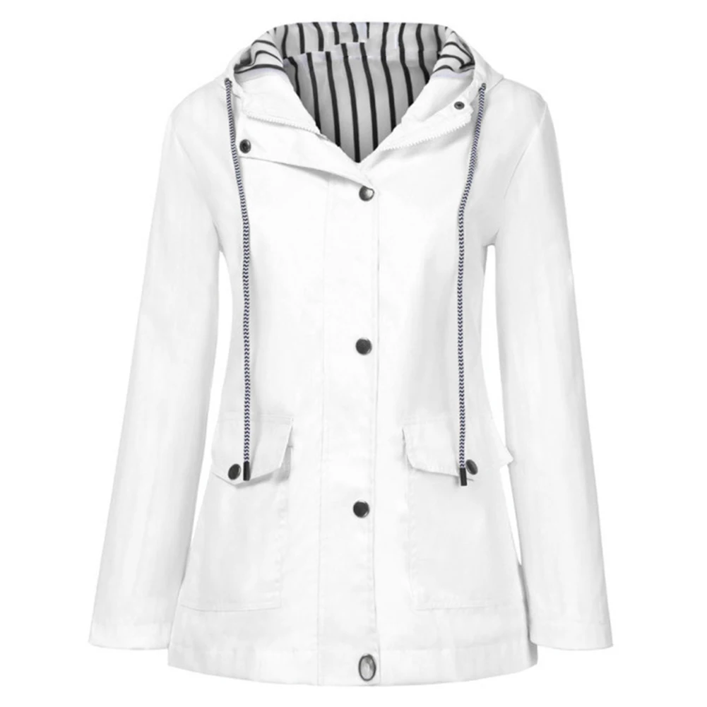Женский ветрозащитный водонепроницаемый плащ с капюшоном, однотонный дождевик в полоску для улицы