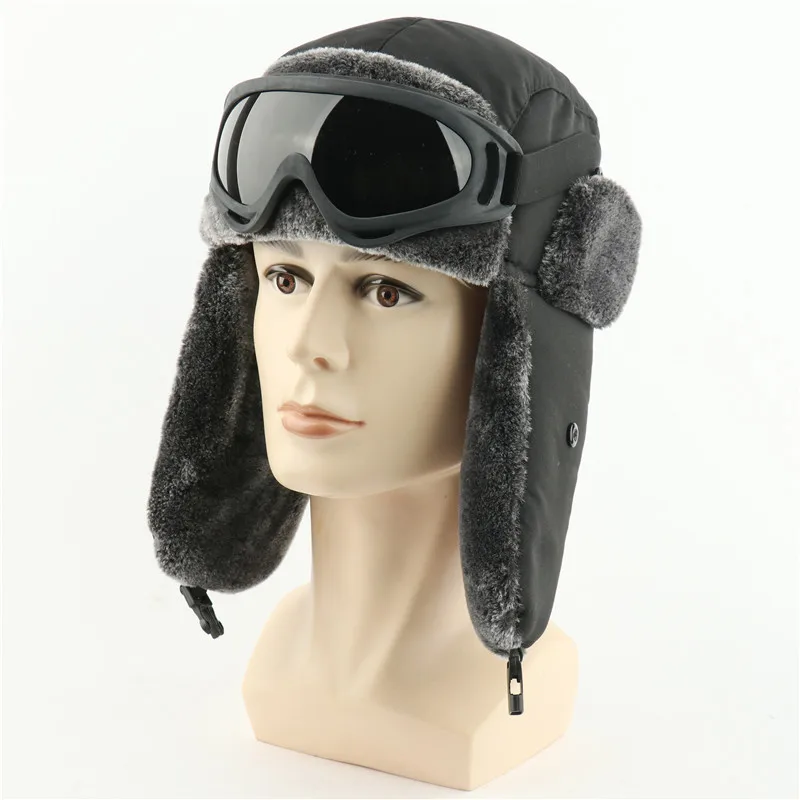 Зимняя водонепроницаемая шапка-бомбер ушанка русская ушанка с очками для мужчин и женщин ушанка шлем летчика искусственный мех тепловые снежные шапки