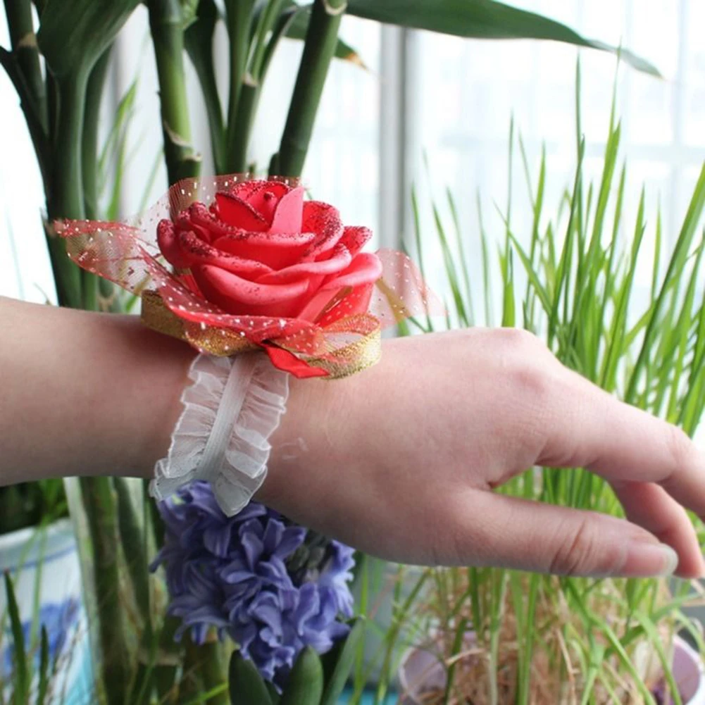 Свадебный браслет розы Блестящие Блестки невесты сестры на запястье корсаж
