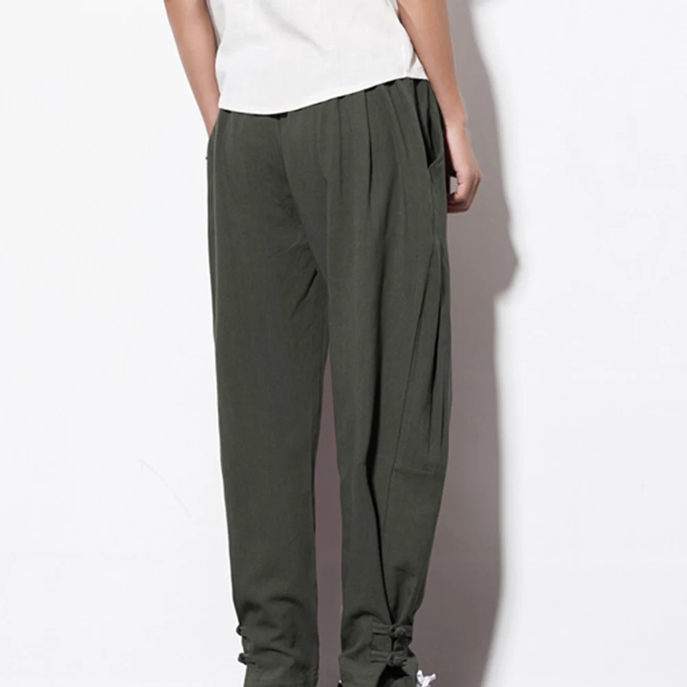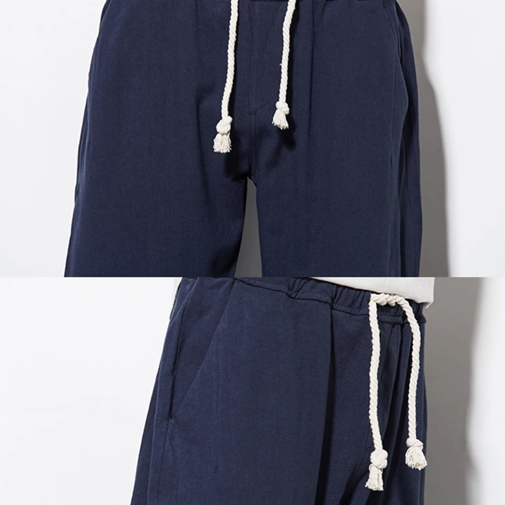 Повседневные мужские свободные штаны-шаровары с карманами и завязками на лодыжке из хлопка и льна размера плюс