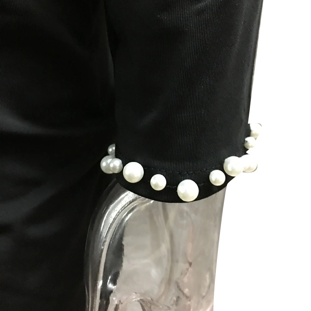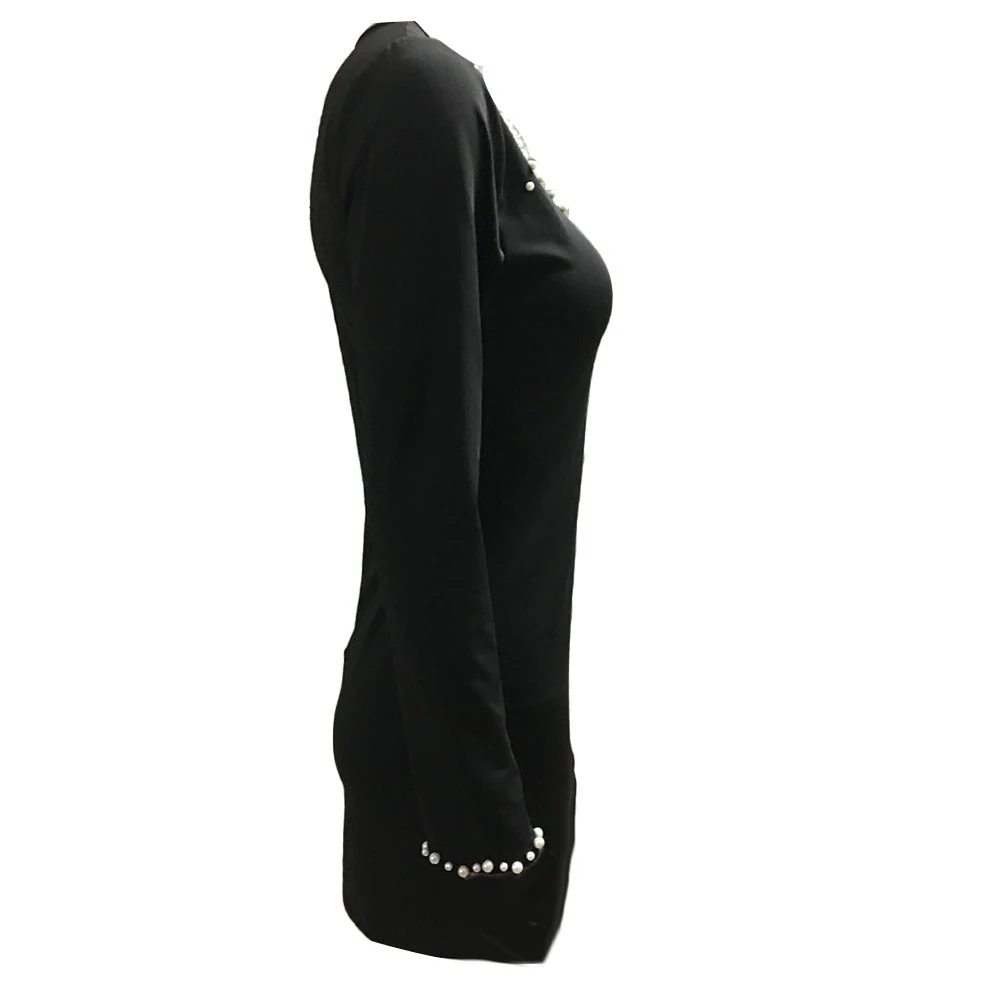 Женское однотонное облегающее мини-платье с круглым вырезом и длинным рукавом с имитацией жемчуга