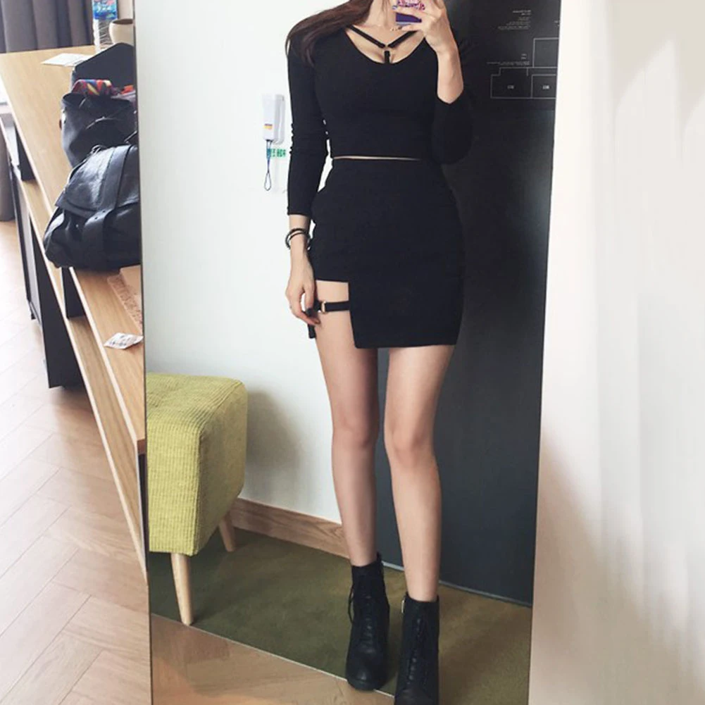 Женская Асимметричная мини-юбка в стиле Харадзюку, с металлическим кольцом и высокой талией, вечерние, лето 2019