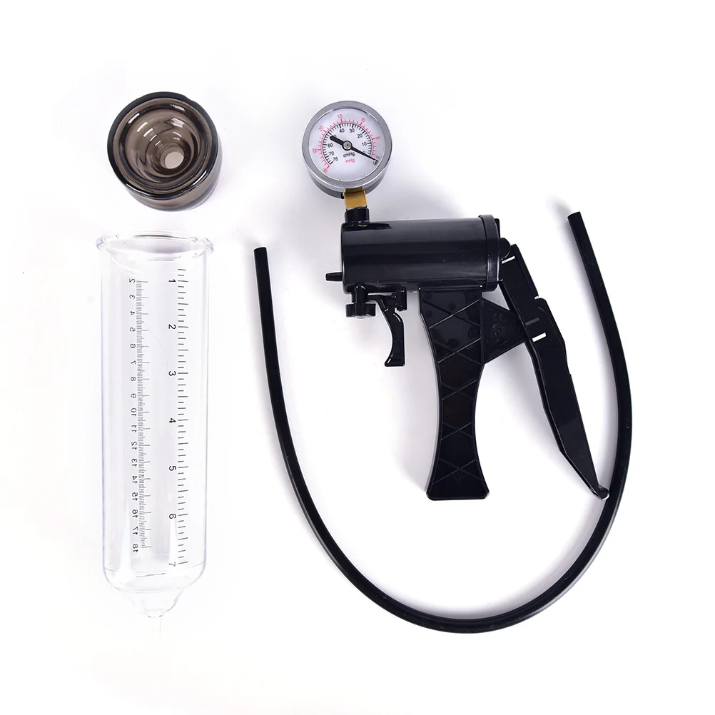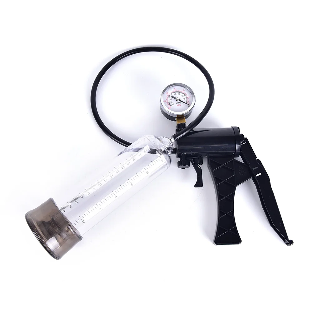 -Ручка захвата и нажмите, чтобы всасывать воздух из цилиндра, и манометр позволяет контролировать уровень накачки