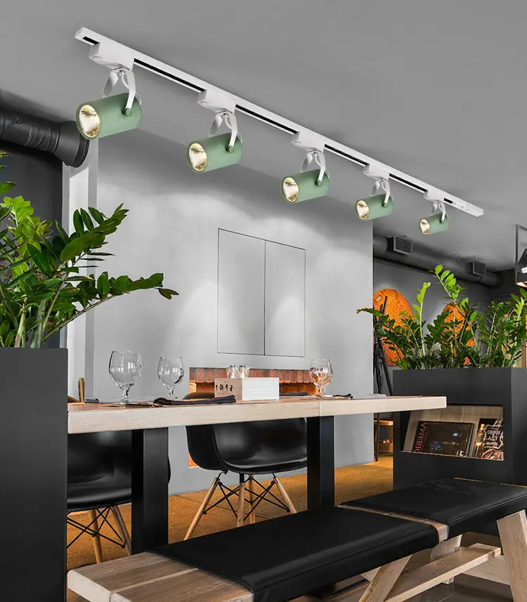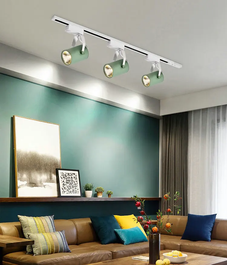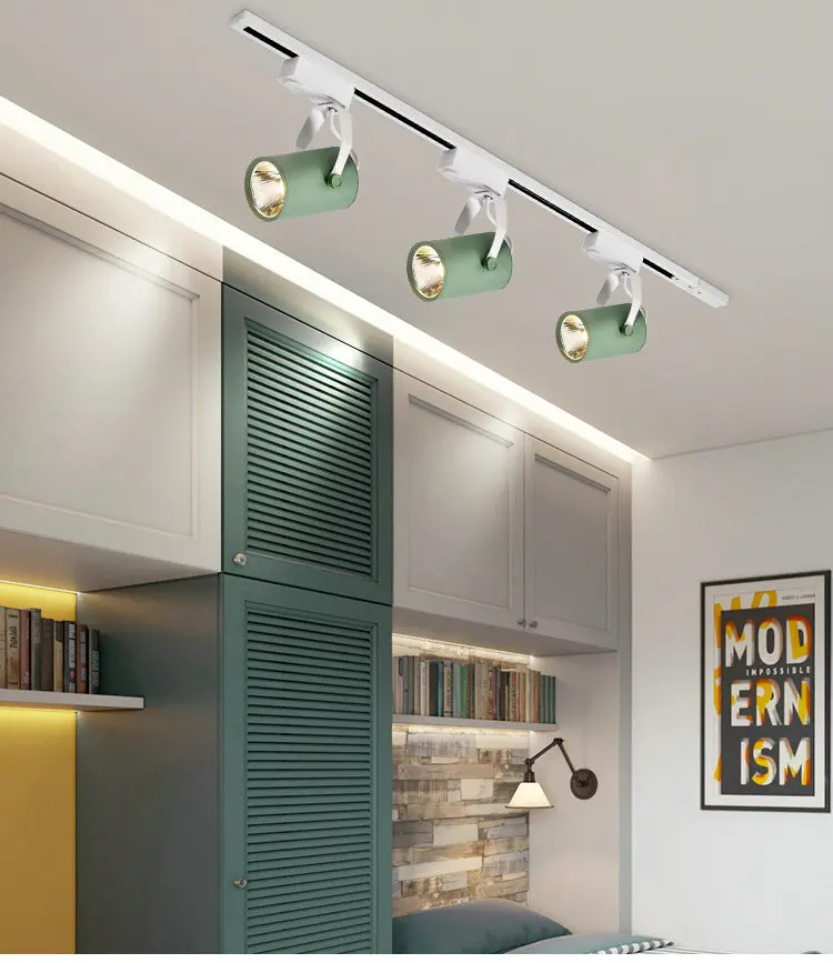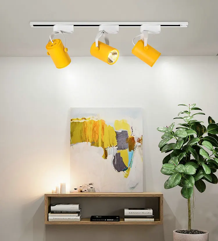 Скандинавский Трековый светильник, Точечный светильник s светодиодный, художественный, для магазина одежды, ресторана, гостиной, желтый, синий, белый, черный, COB Светодиодный Трековый светильник