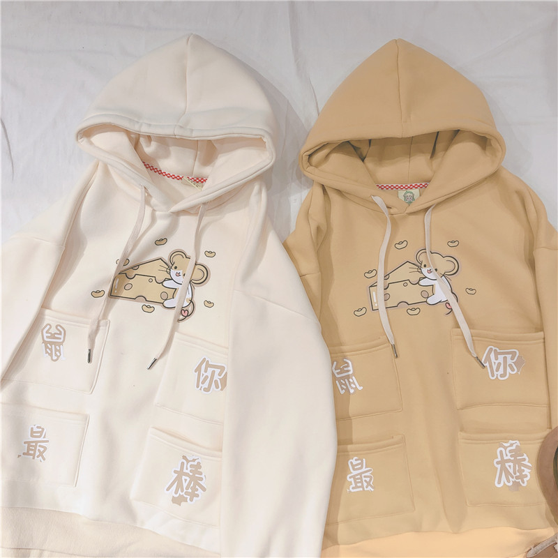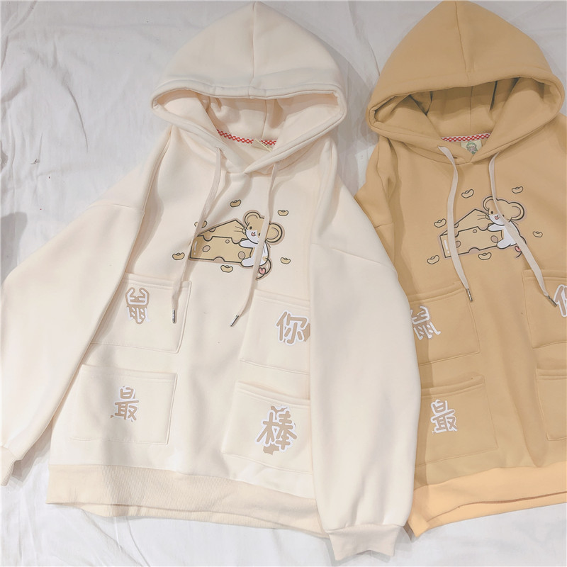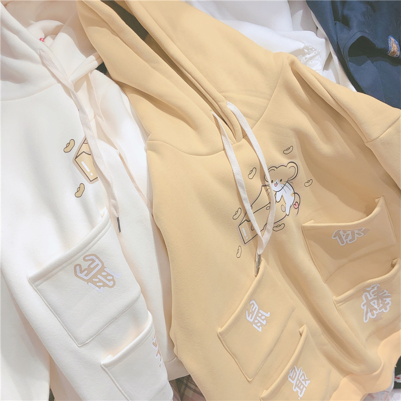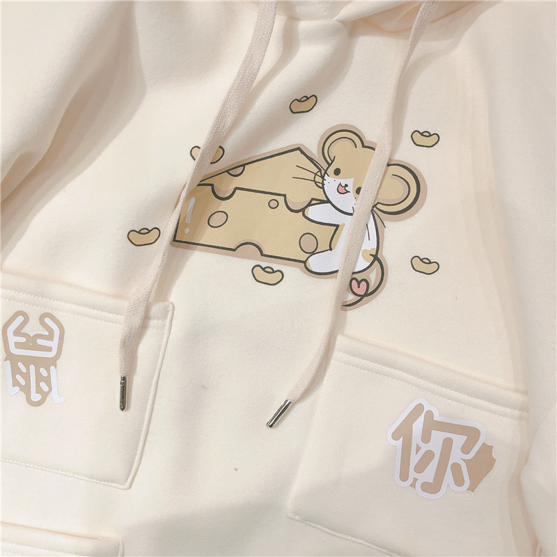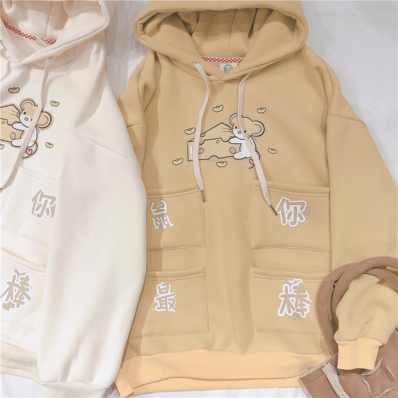 Зимняя женская бархатная толстовка с капюшоном для девочек, свободный мягкий свитер с капюшоном для маленьких девочек, пуловер с рисунком мышки из мультфильма, топы
