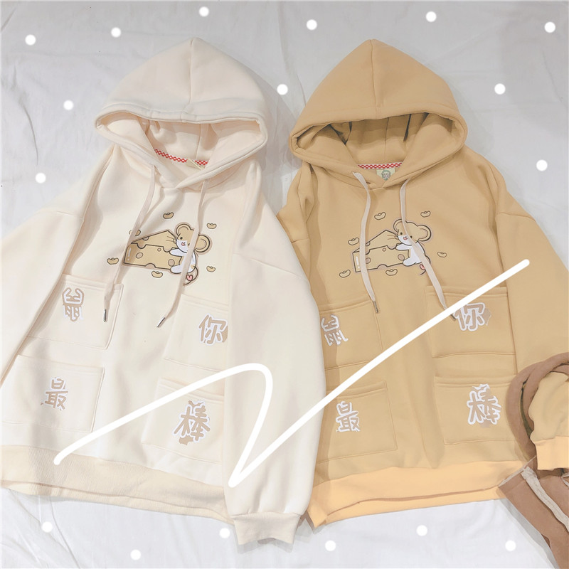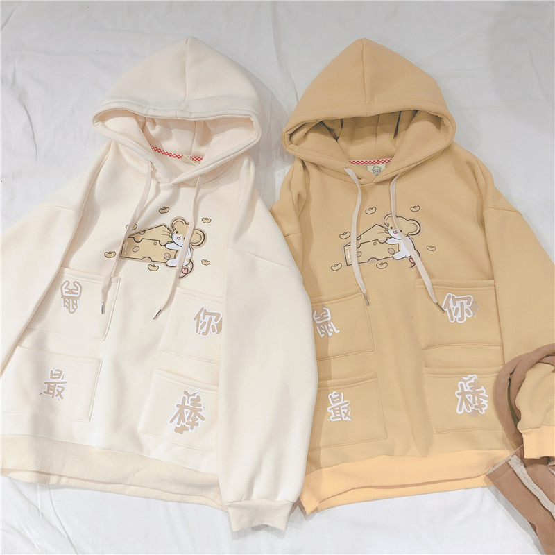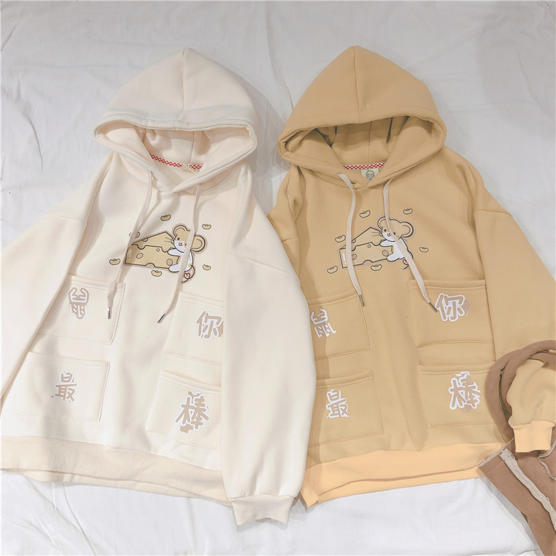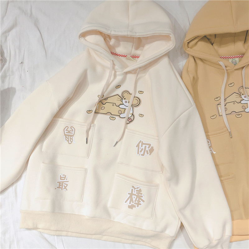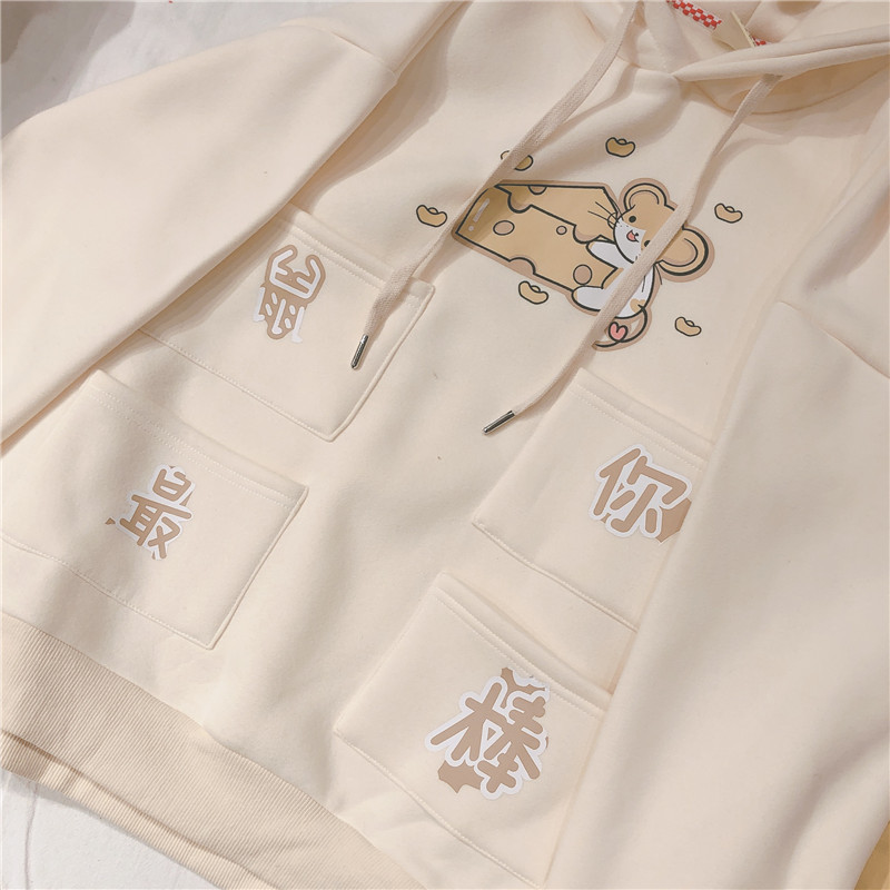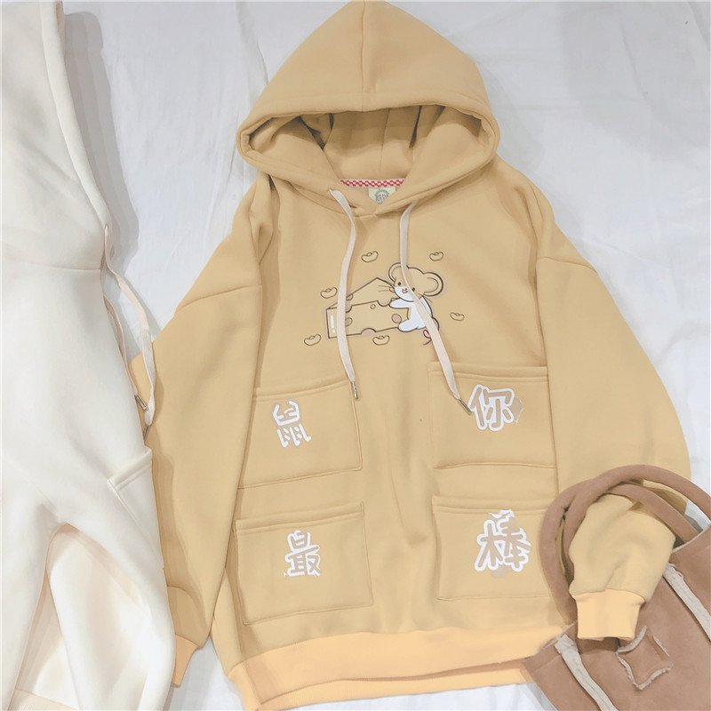 Зимняя женская бархатная толстовка с капюшоном для девочек, свободный мягкий свитер с капюшоном для маленьких девочек, пуловер с рисунком мышки из мультфильма, топы