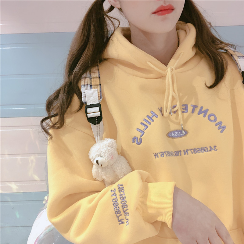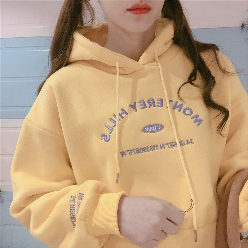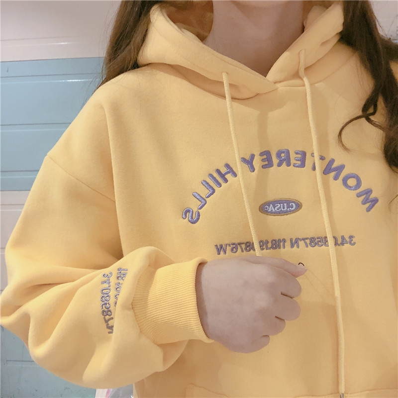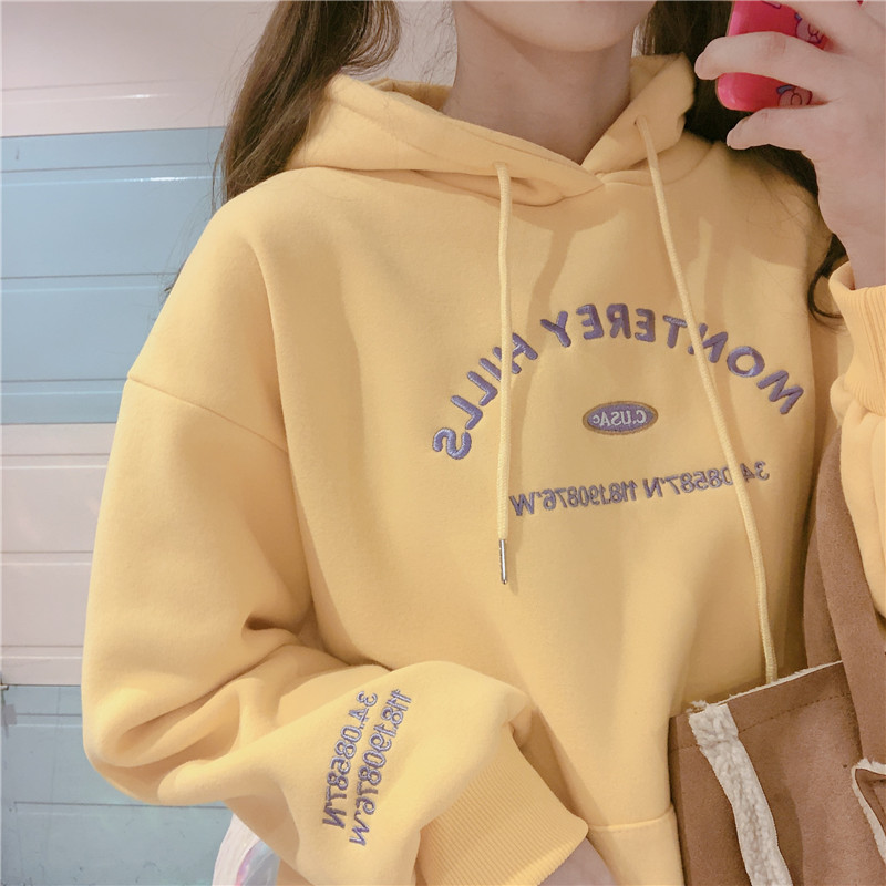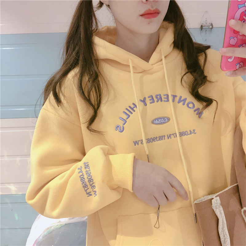 Свободные милые толстовки с капюшоном и вышивкой в виде букв; бархатная толстовка с капюшоном; свитер для девочек-подростков; разноцветный пуловер; топы в школьном стиле