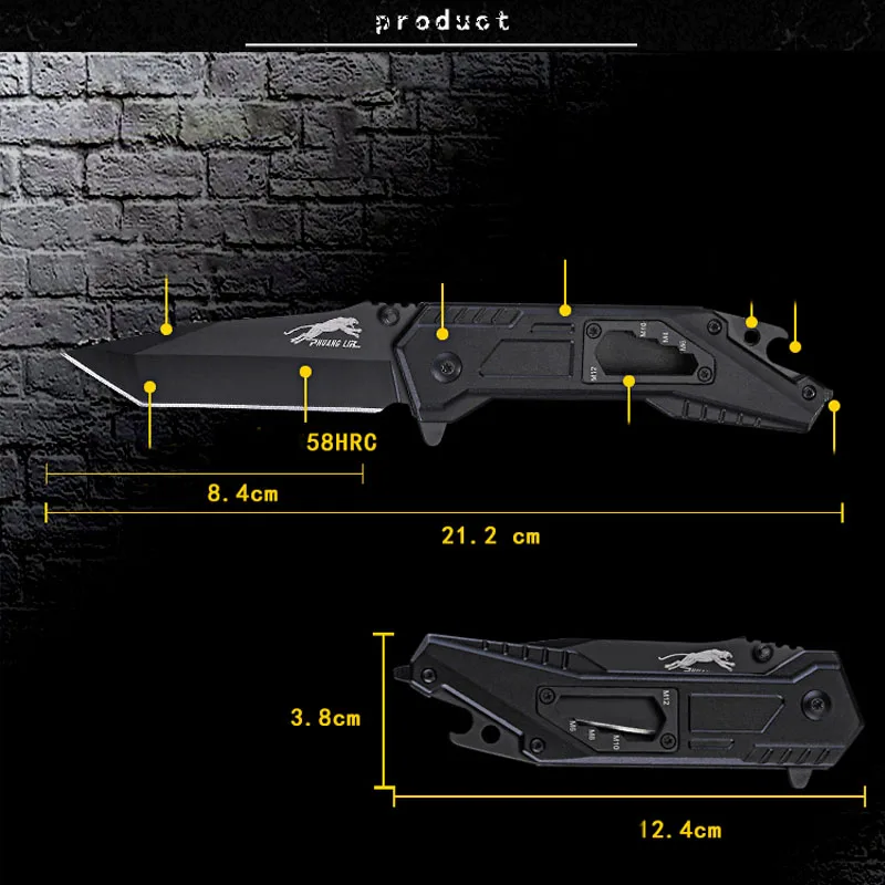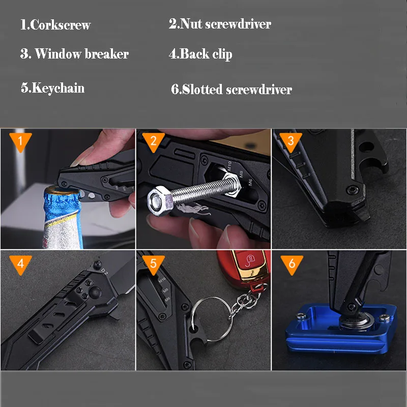 Функция: складной нож, Задний зажим, отвертка, открывалка для бутылок, молоток, шлицевая отвертка, отверстие для ремешка