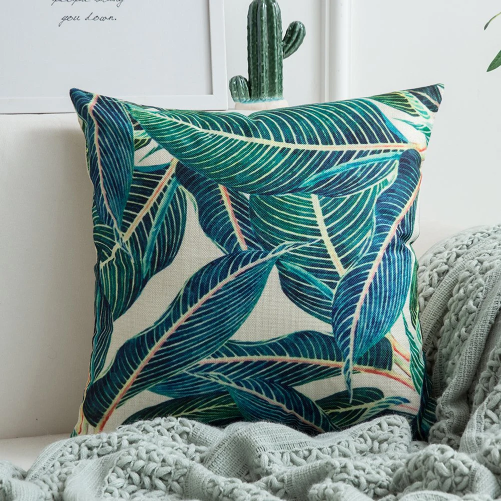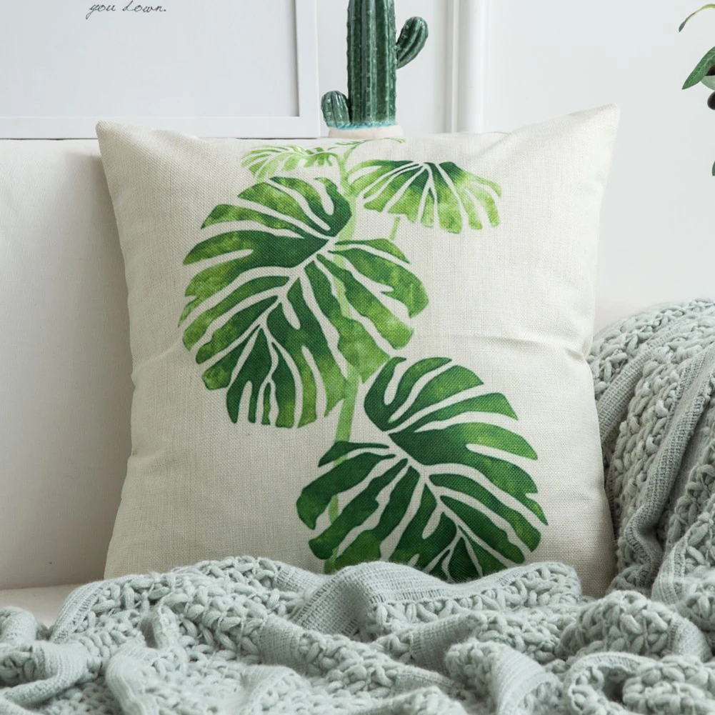 Monstera лист квадратная льняная наволочка, чехол для подушки, дивана, кровати, автомобиля, офиса, Декор