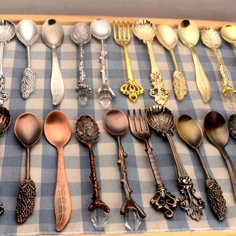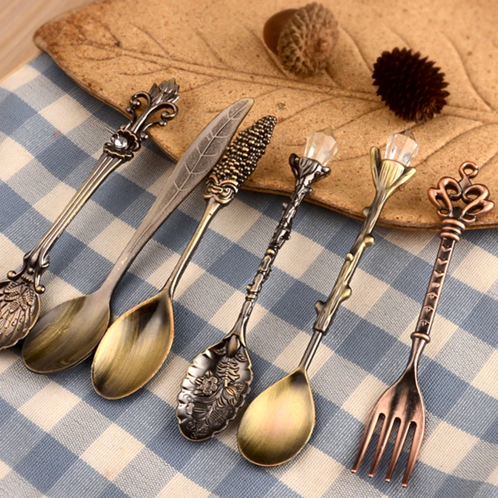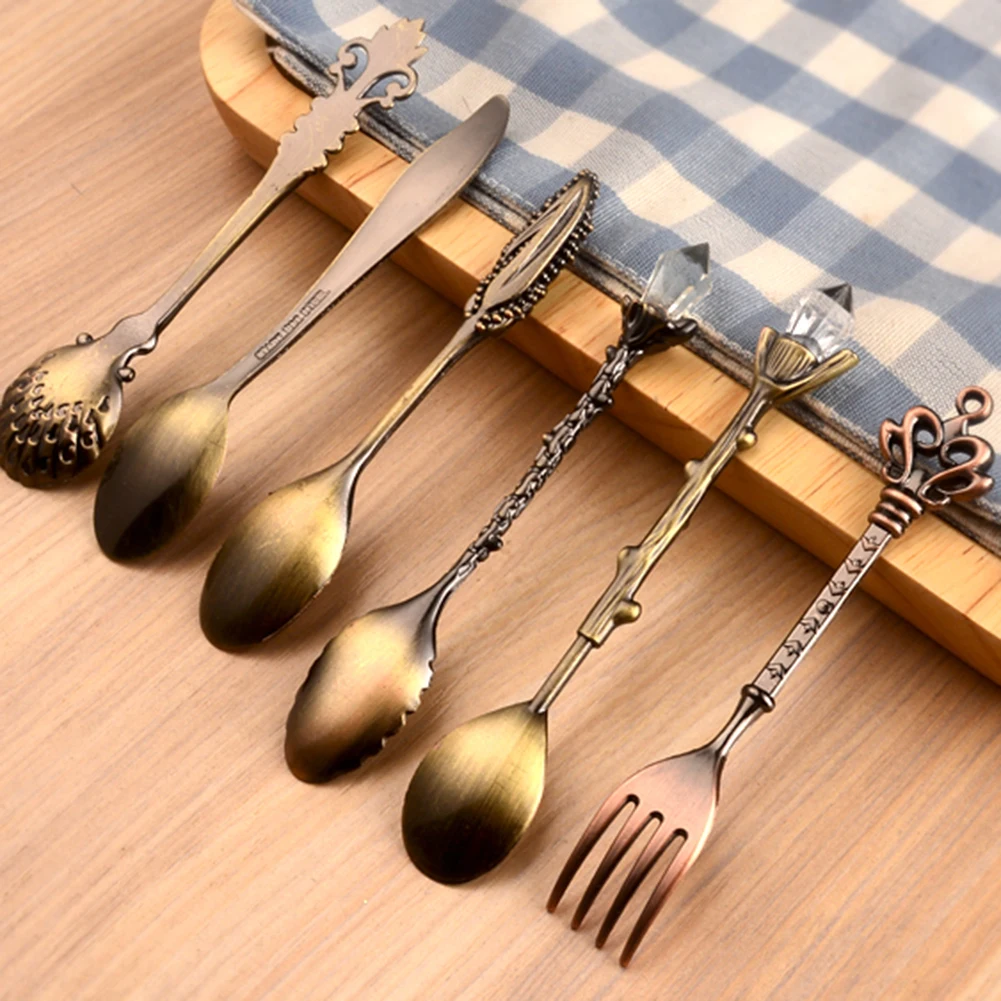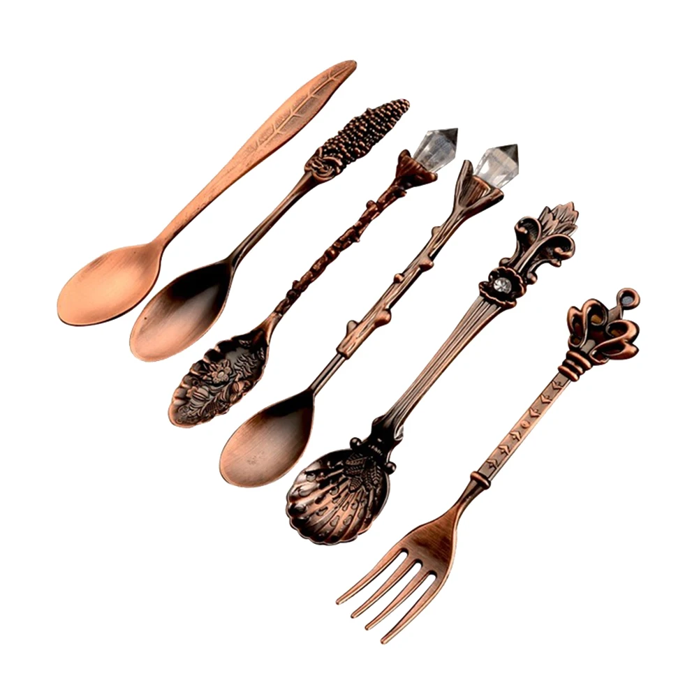 6 шт. набор посуды столовые приборы из нержавеющей стали кухонная посуда Корона скипетр голова с длинной ручкой кофе Десерт смешивания ложка Вилка