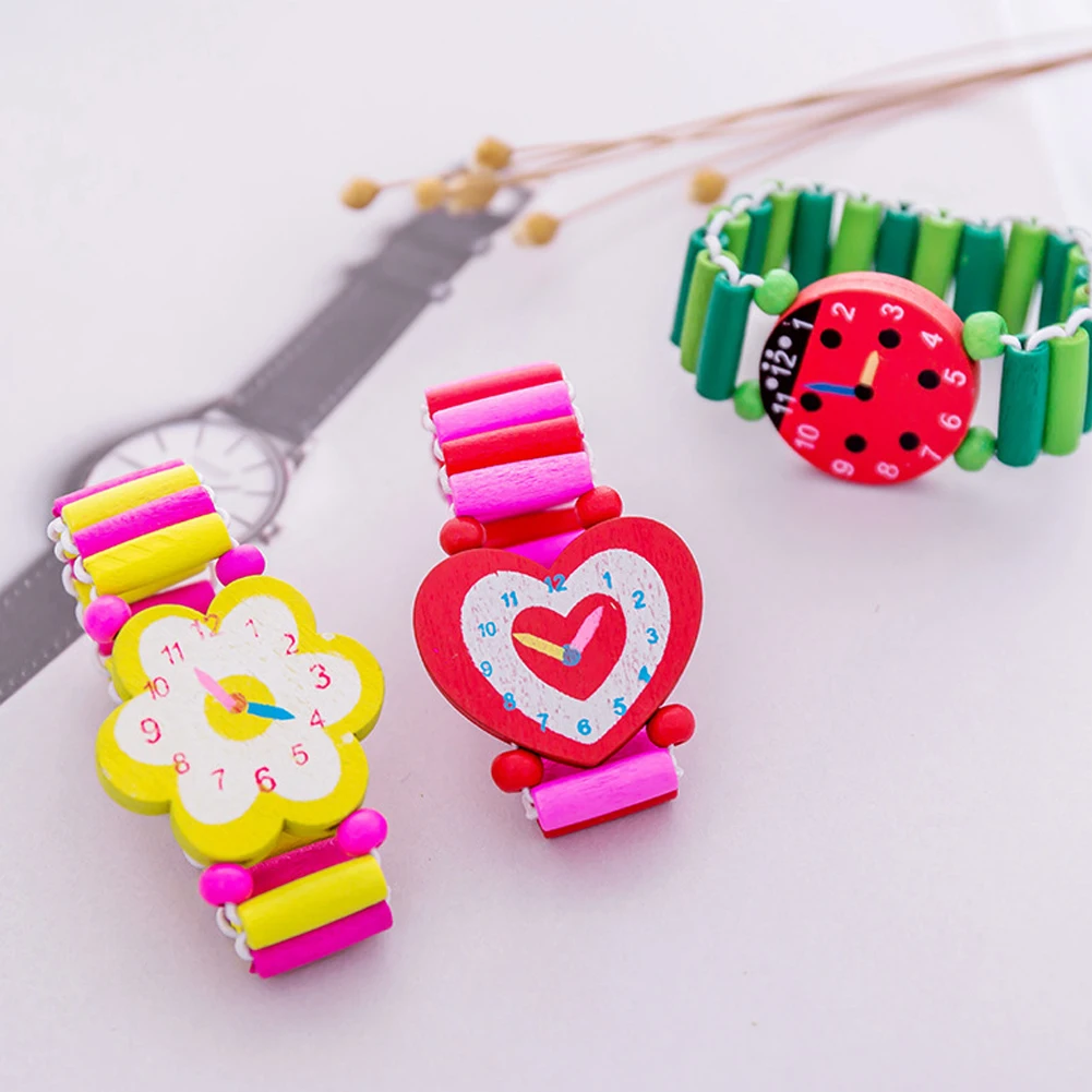Детские деревянные игрушки ручной работы для детей, обучающие и развивающие Мультяшные эластичные часы, подарок для детей браслет-игрушка