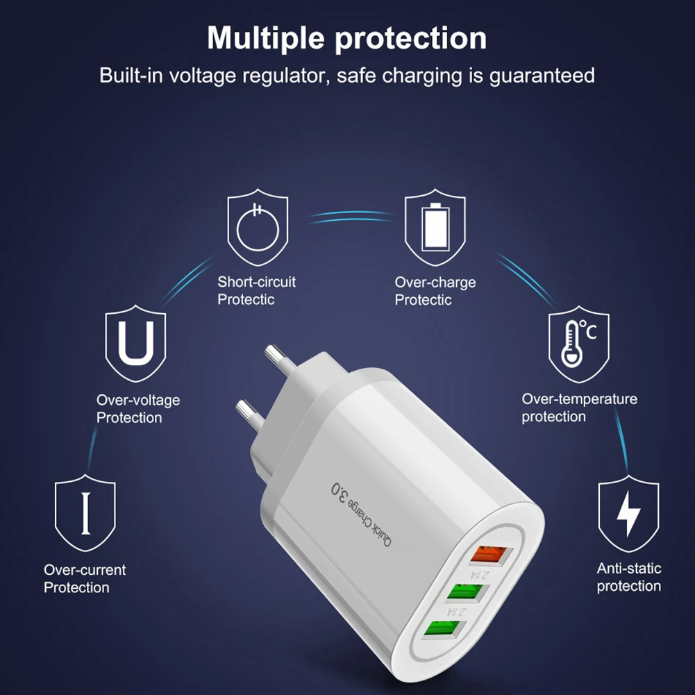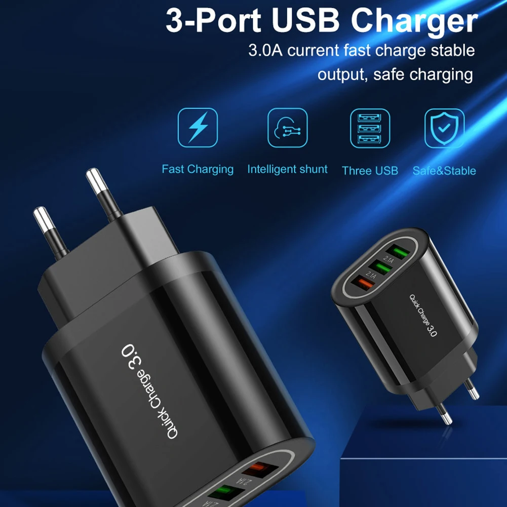QC3.0 3 USB зарядное устройство 3.1A быстрое зарядное устройство для путешествий зарядное устройство для iPhone Samsung Huawei Xiaomi зарядное устройство для телефона