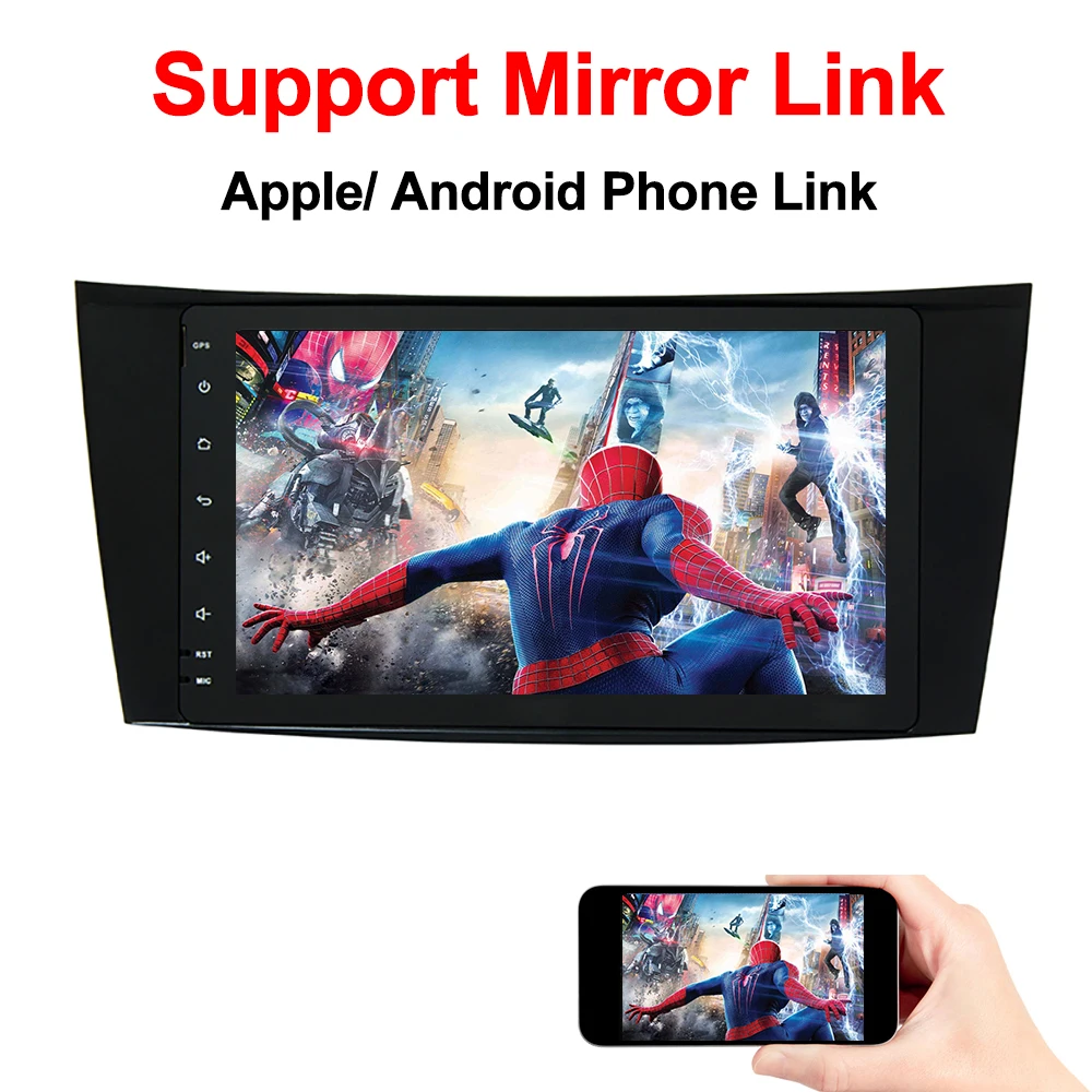 Description: 1) For Benz E-Class W211/ G-Class W463/ CLS W219/ CLK W209 2001-2010. 2) Pure Android O.S. 8.1 system with RAM 4GB, Flash Memory 64GB. 3) Built in DSP, 4G SIM Card. 4) Big HD TFT LCD screen with 1024*600 pixels resolution and 32-color display. 5) Built-in GPS/A-GPS/Glonass navigation, and support multiple navigation applications. 6) Multiple audio video formats supported: MP3, DIVX, Mp3, MP4, MP5(RM ,RMVB(1280*720P), AVI and JPEG, BMP, PNG, TIFF, JIF,etc. 7) Picture-in-Picture display, Pop-up/floating video play, Split-screen mode supported. 8) Built-in Bluetooth for hands-free call making and music streaming, support A2DP and Bluetooth OBDII. 9) Built-in WiFi and support external 4G dongle via USB for internet access. 10) Built-in FM/AM Radio Tuner with RDS, and up to 36 preset radio stations with radio response bandwidth 11) Support iPod ready stereo, external USB flash, SD cards. 12) Support multiple options like TPMS, Rear Camera, DAB+ receiver, Rear View Camera, Digital TV Receiver, DVR/Aux, etc. 13) Electronic and mechanical anti-shock design. 14) Pin-to-Pin connectors and standard wiring harnesses for plug&play. 15) Operation Temperature: -20°C+75°C 16) Support Chinese, English, Spanish, French, Arabic, Russian, Japanese, Korean, Italian, Irish, German etc.Picture-in-Picture (PiP)/Split-Screen Mode