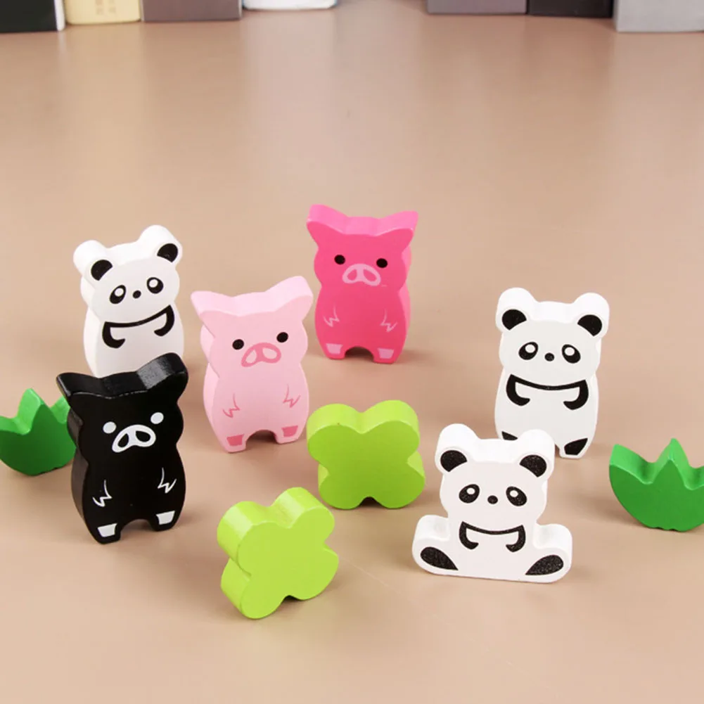 1 комплект, детские блоки для укладки, игрушки, деревянная панда, свинья, животные, луна, блоки, укладка, баланс, игра, развивающая детская развивающая игрушка