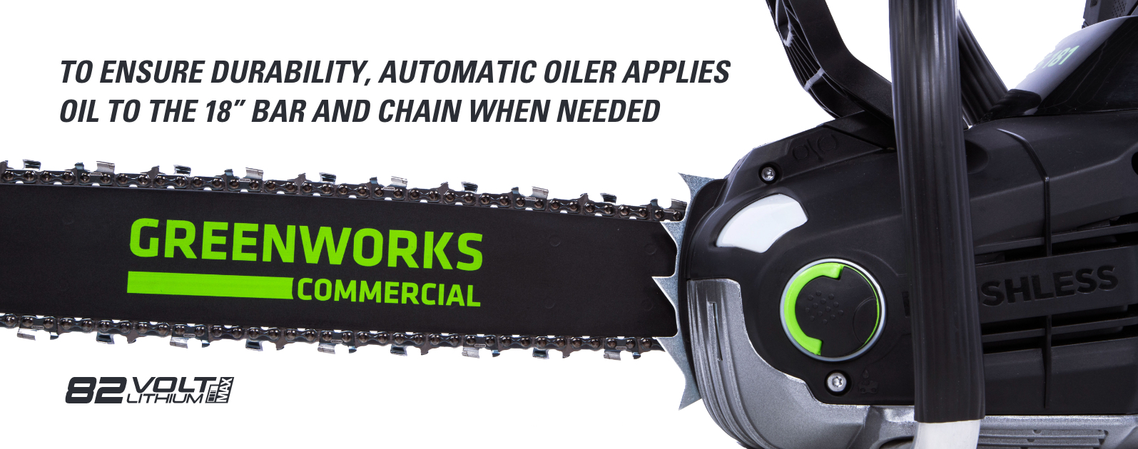 · До 150 порезов с полностью заряженной батареей 5 Ач, включенная батарея · бесщеточные двигатели DigiPro более надежны и обеспечивают газовую эквивалентную производительность газовому двигателю 45cc · стальные шипы, прочная металлическая конструкция обернуть вокруг ручки и электронные цепи стоп-сигнал для безопасной работы · Быстрый Используйте 30-минутную взимать плату за стандарт 80V 2ah батареи, Доступно несколько аккумуляторов · 82V 5ah литий-ионный аккумулятор и зарядное устройство в комплекте, совместимые модели аккумуляторов и зарядных устройств GBA80200, GBA80400 и GCH8040