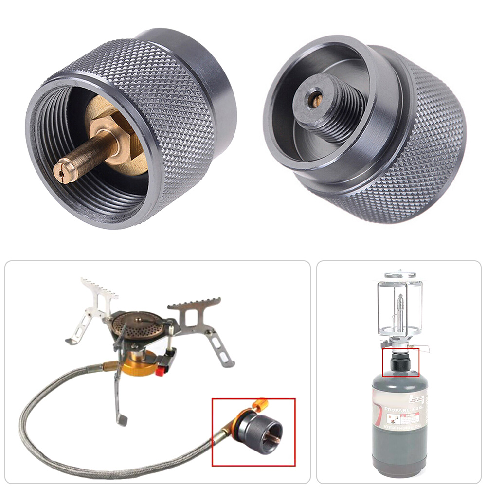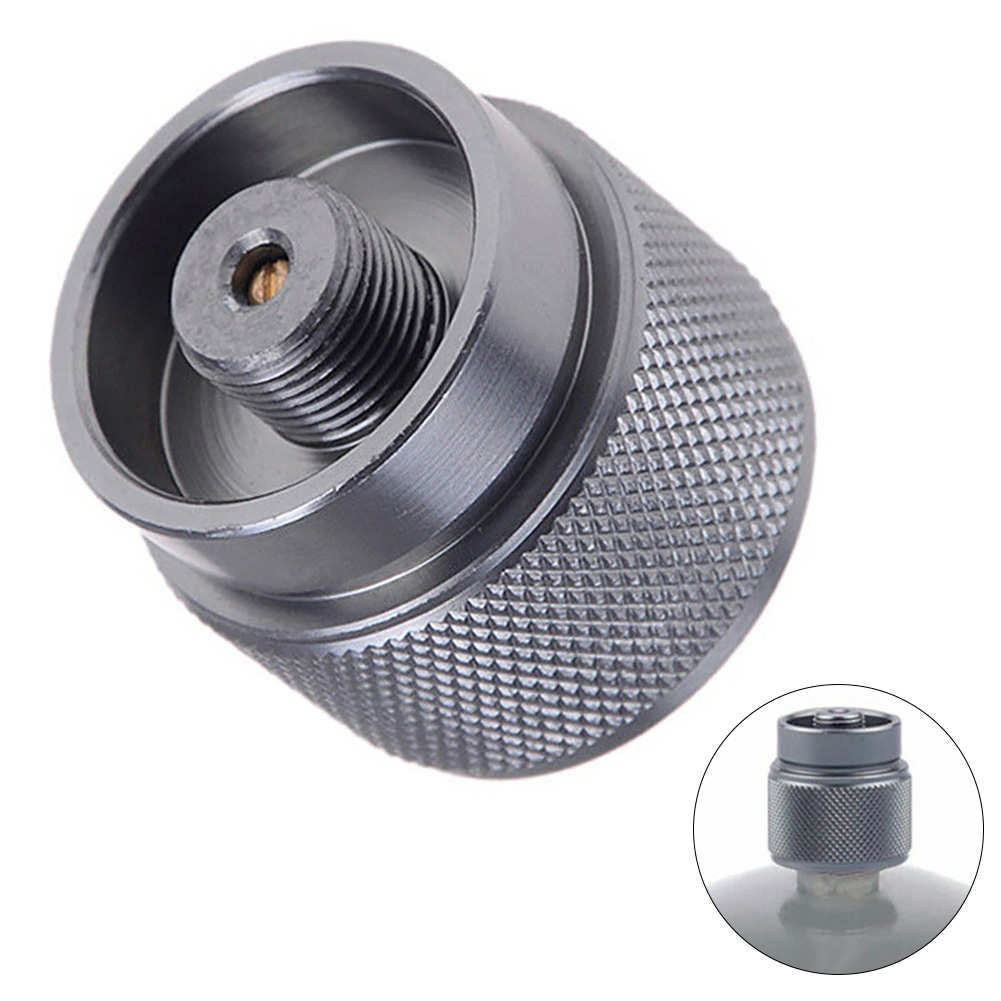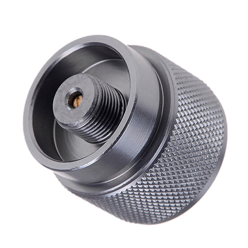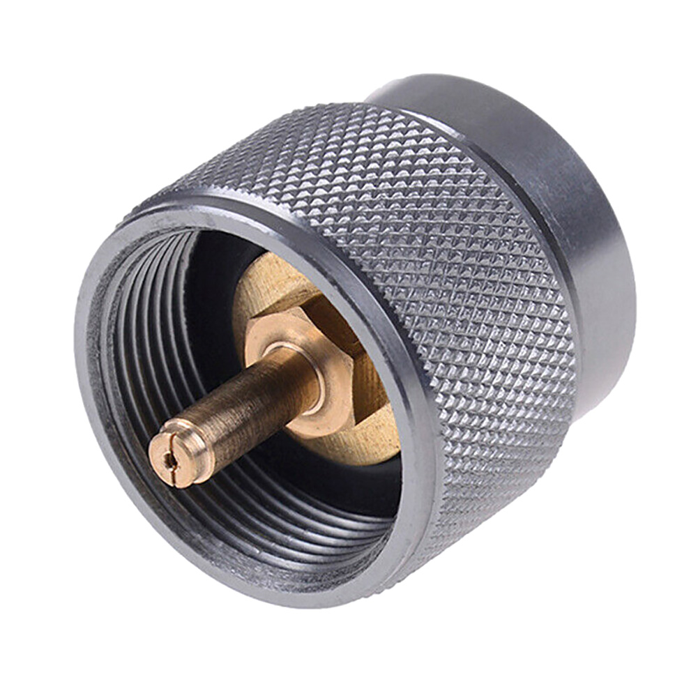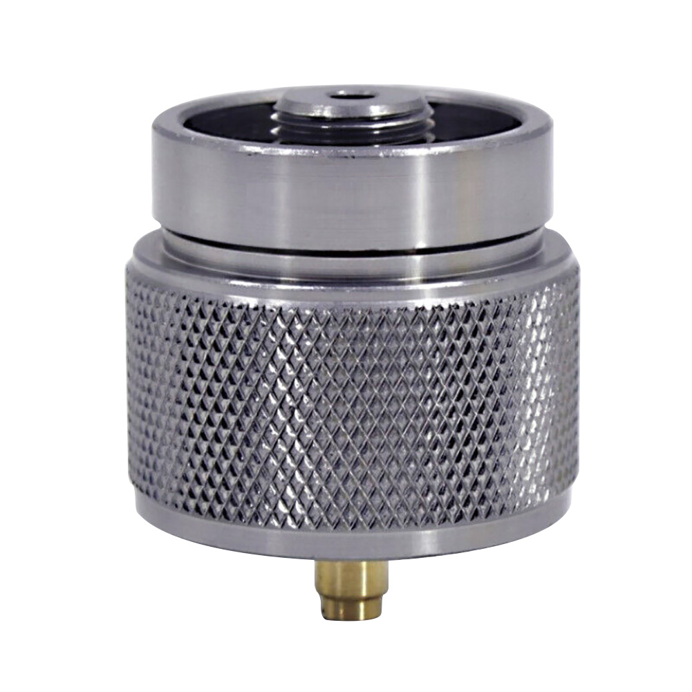 Адаптер подключен к 1 lb. Газовый бак, а затем имеет ту же резьбовую розетку, что и плоский газовый бак