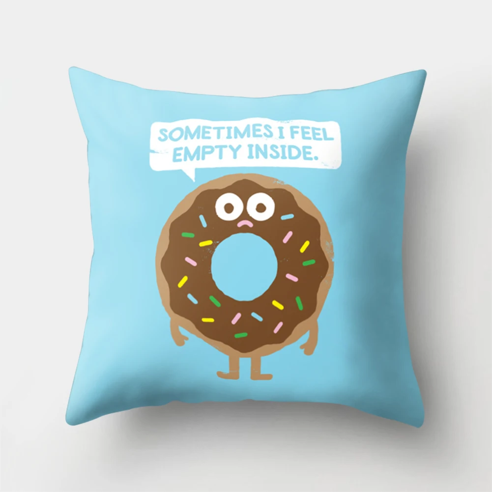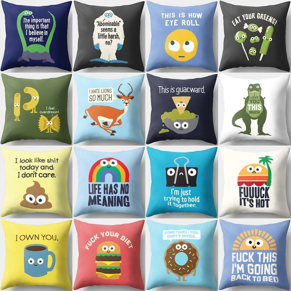 Чехол-подушка с мультяшным рисунком, выглядит забавно и модно.