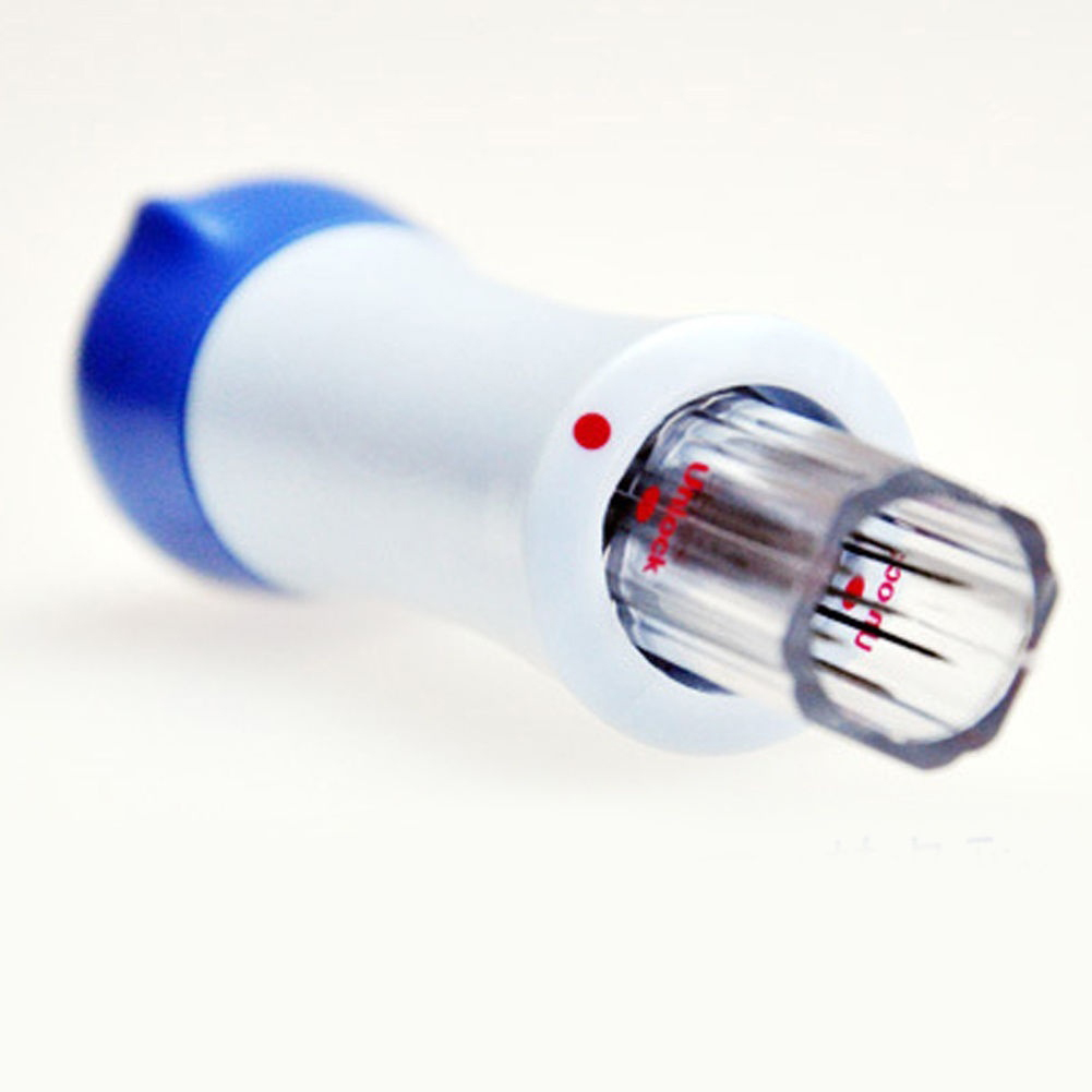 1. В общей сложности установлены 7 игл, и игла может быть заменена. Замените булавку для прокола, отвинтив крышку.