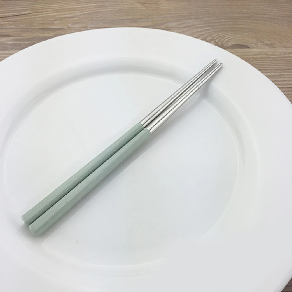 1 пара практичных портативных палочек для еды из нержавеющей стали, домашние Нескользящие палочки для еды из пшеницы с защитой от ожогов, посуда