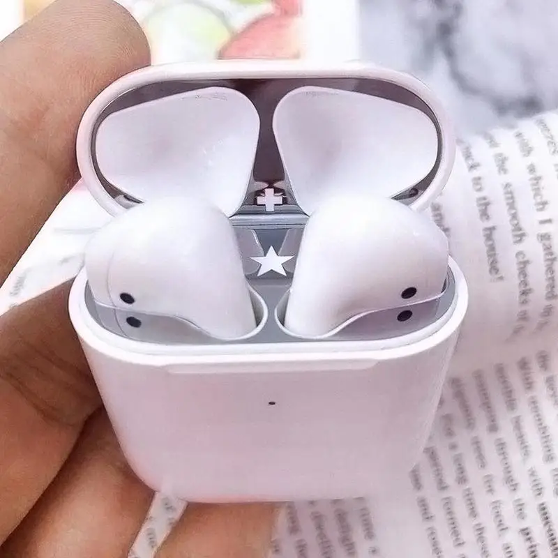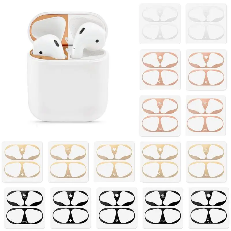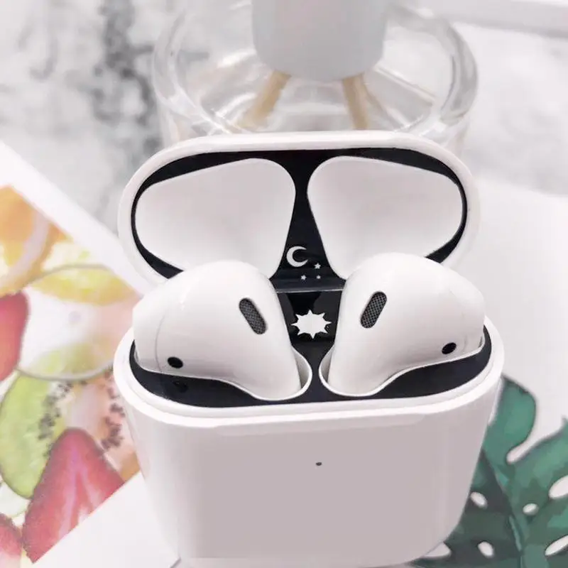 Металлическая Пылезащитная крышка стикеры для Apple AirPods 2/1 чехол Крышка Аксессуары ультра-тонкая защитная упаковка для защиты от пыли стикеры кожи самоклеящаяся плёнка из ПЭТ