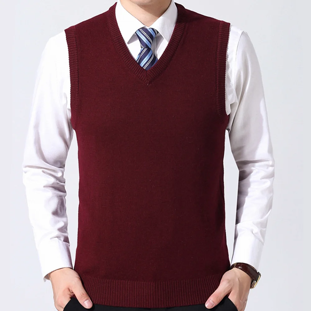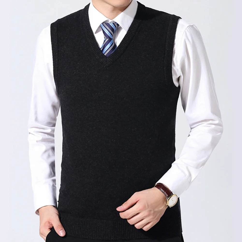 Мужская Повседневная зимняя однотонная Вязаная Шерстяная жилетка без рукавов с v-образным вырезом размера плюс