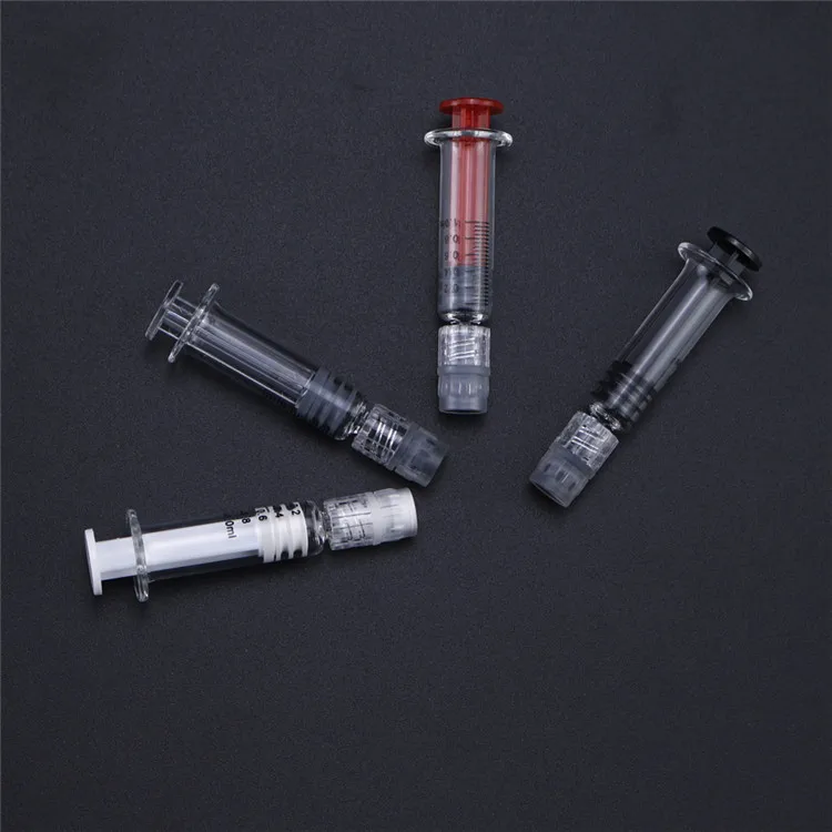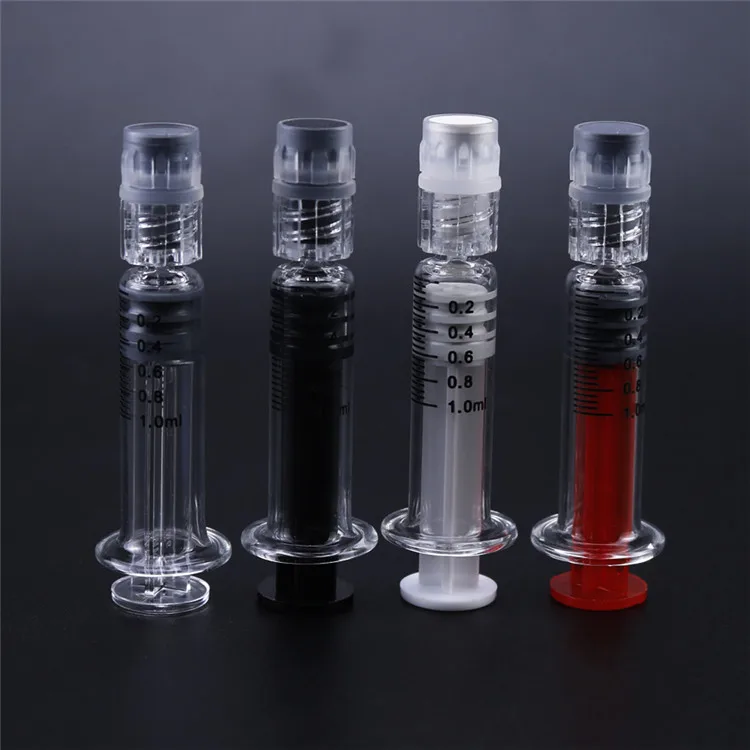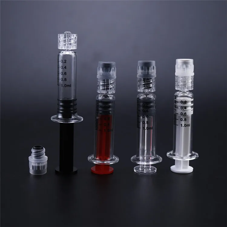 2,4 дюймов в высоту стеклянный шприц 1,0 мл с ясным масштабом для КБД/воск/масло/концентрат для хранения и транспортировки, сухой травы, электронная сигарета
