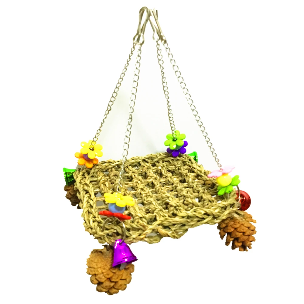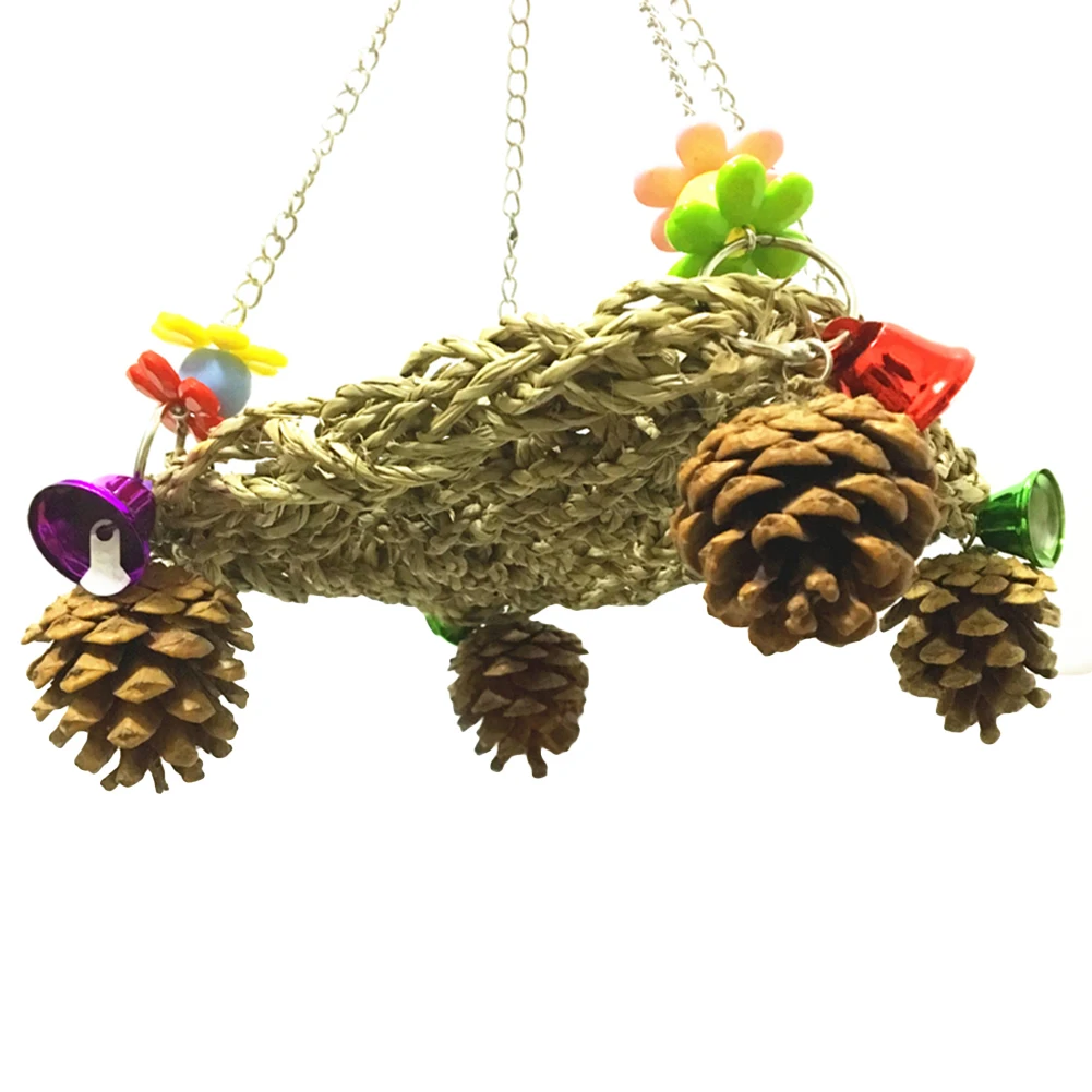 Животное птица попугай сосновый конус колокольчик Висячие качели гамак платформа интерактивная игрушка