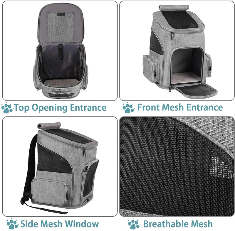 Вентиляция и легкое Взаимодействие:Рюкзак-переноска для собак имеет два входа, которые позволяют вашему питомцу высунуть голову. Вы можете накормить свою собачку или играть с ним, не опуская сумку для переноски. Верхнюю подкладку можно закатать для удобства. Четыре окна из дышащей сетки обеспечивают видимость и вентиляцию воздуха. Во время путешествия питомец может иметь хороший вид на окружающую среду и дышать свободно, так что он будет чувствовать себя расслабленным и спокойным