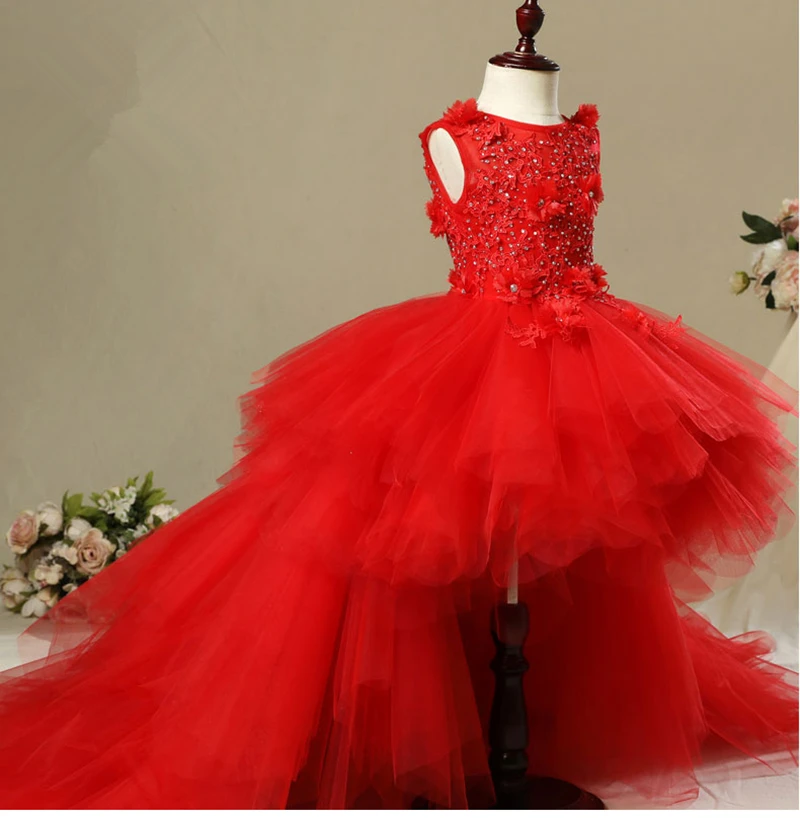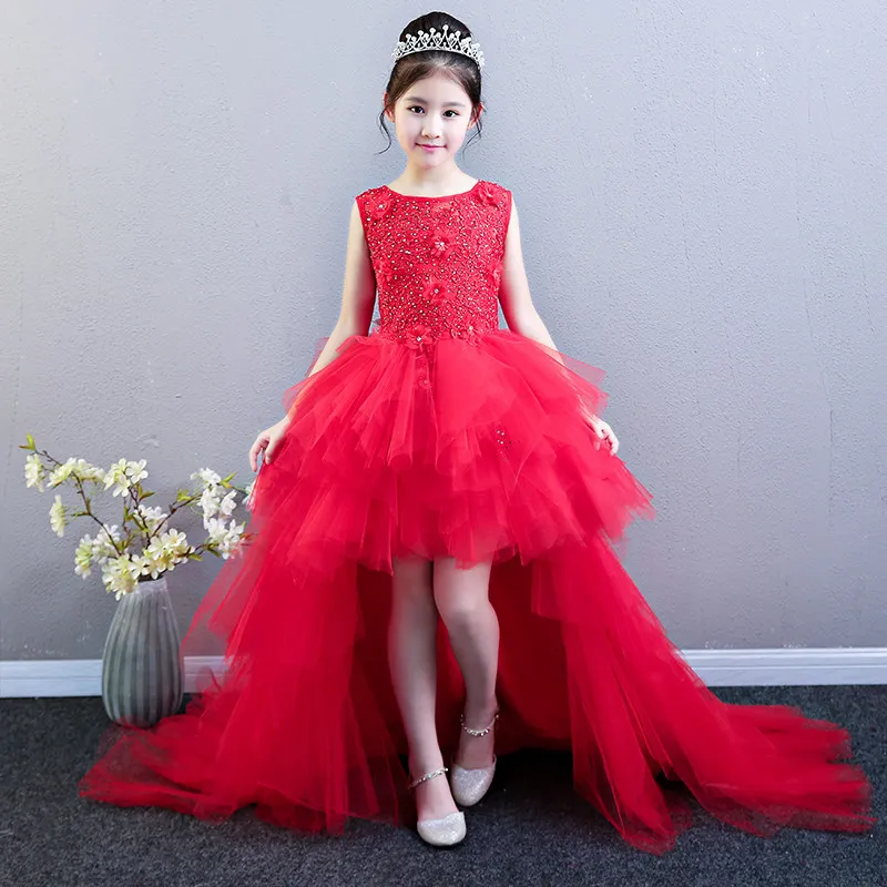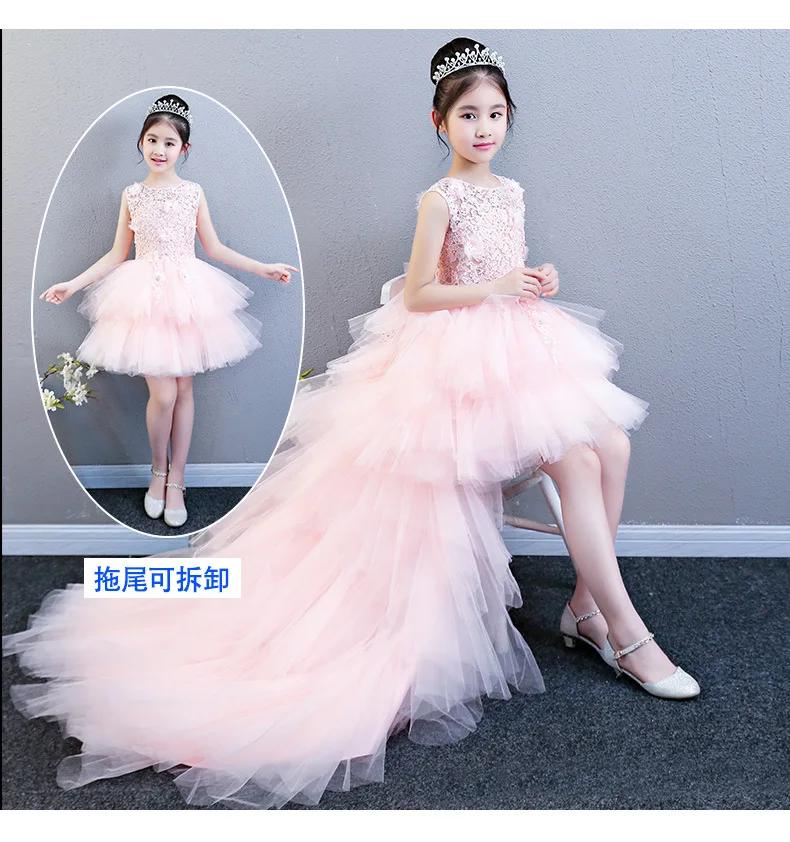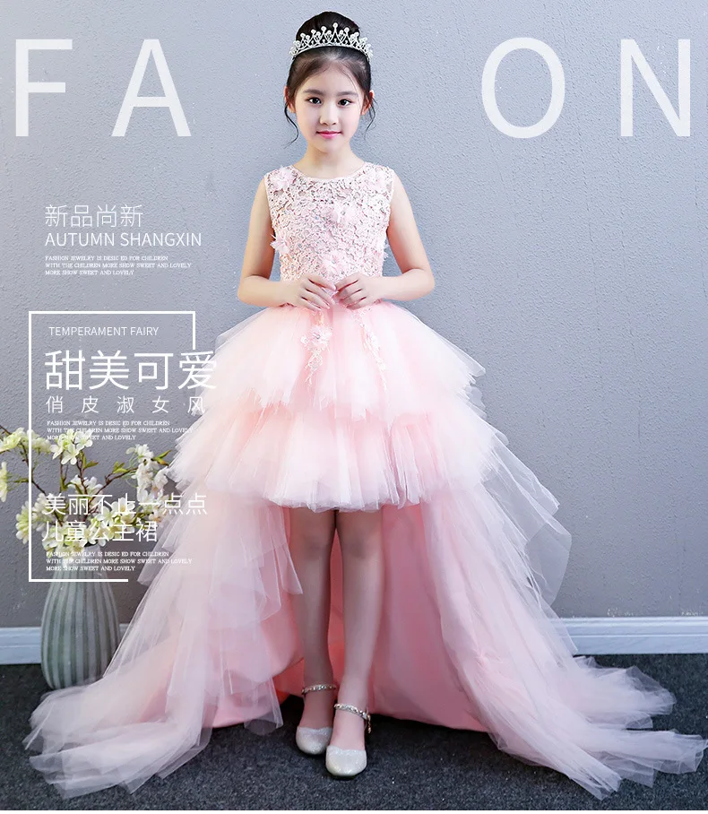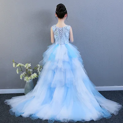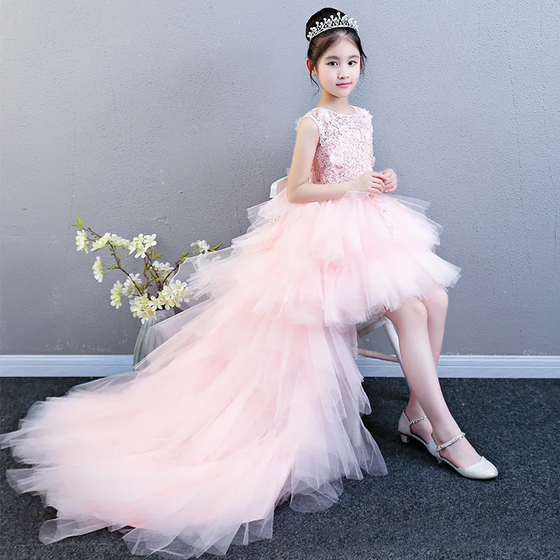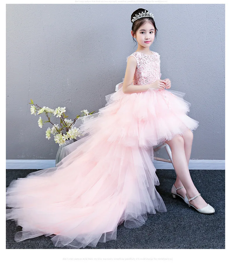 2020 нарядное платье с цветочным узором для девочек со шлейфом, Детский костюм для выступлений, детские длинные черные платья из фатина с русалочкой, Изысканная одежда