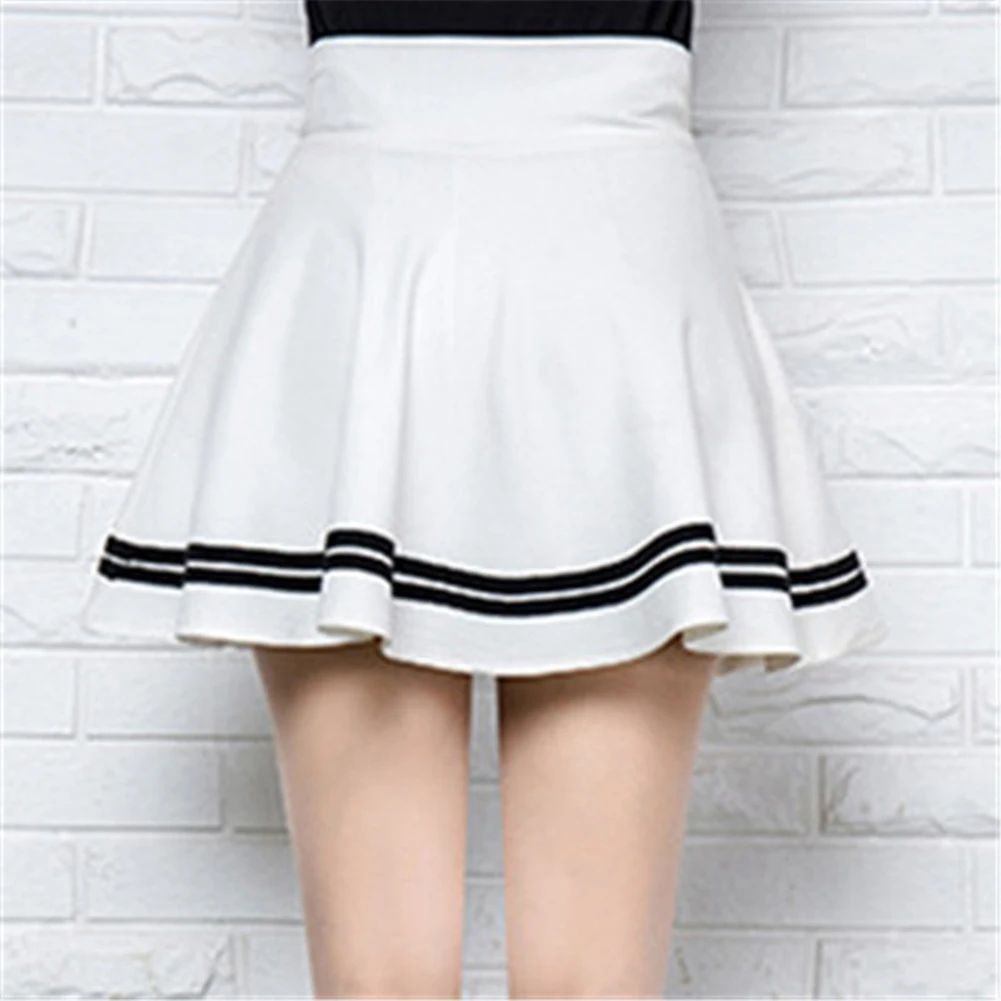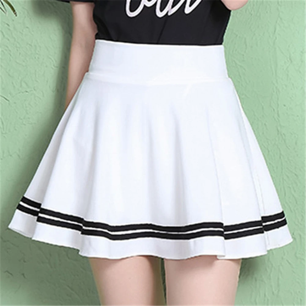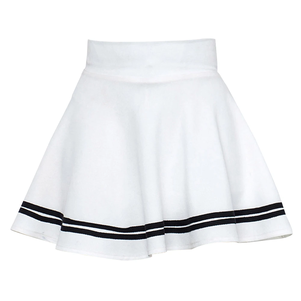 Women Fashion Solid Color High Waist Stripe Pleated A Line Mini School Skirt