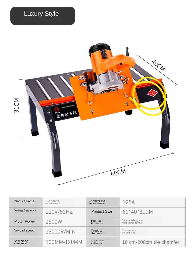 Параметры продукта Частота напряжения: 220 В/50 Гц Размер изделия: 60*40*31 см Мощность двигателя: 2300 Вт Характеристики продукта: конструкция рельса скольжения является более трудоемкой Скорость без нагрузки: 13000р/мин Характеристики изделия: кромка Диаметр пильного диска: 100 мм-120 мм Область применения: 10-200 см фаски для плитки Модель фаски: 125A Частота напряжения: 220 В/50 Гц Размер изделия: 60*40*31 см Мощность двигателя: 1800 Вт Характеристики продукта: конструкция рельса скольжения является более трудоемкой Скорость без нагрузки: 13000р/мин Характеристики изделия: кромка Диаметр пильного диска: 100 мм-120 мм Область применения: 10-200 см фаски для плитки Эта Пыленепроницаемая фаски машина подходит для портативной резки с регулируемой глубиной резки. Он имеет лучший эффект резки. У нас есть два подъемных портативных режущих станка на выбор (1800 Вт-2300 Вт). Если у вас есть какие-либо вопросы, пожалуйста, зайдите в магазин. Консультационное обслуживание.