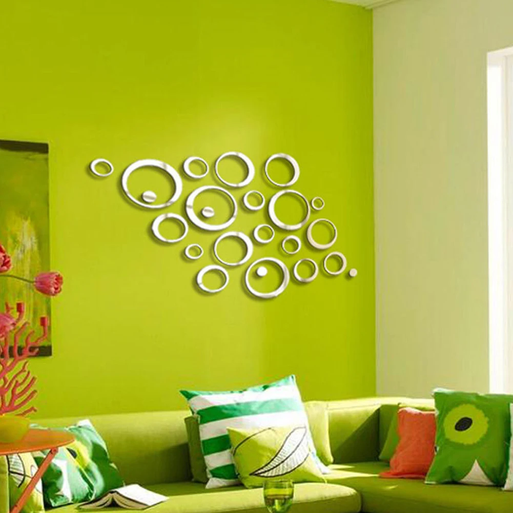 24 шт. клейкая 3D DIY круглая зеркальная акриловая Настенная Наклейка домашний декор