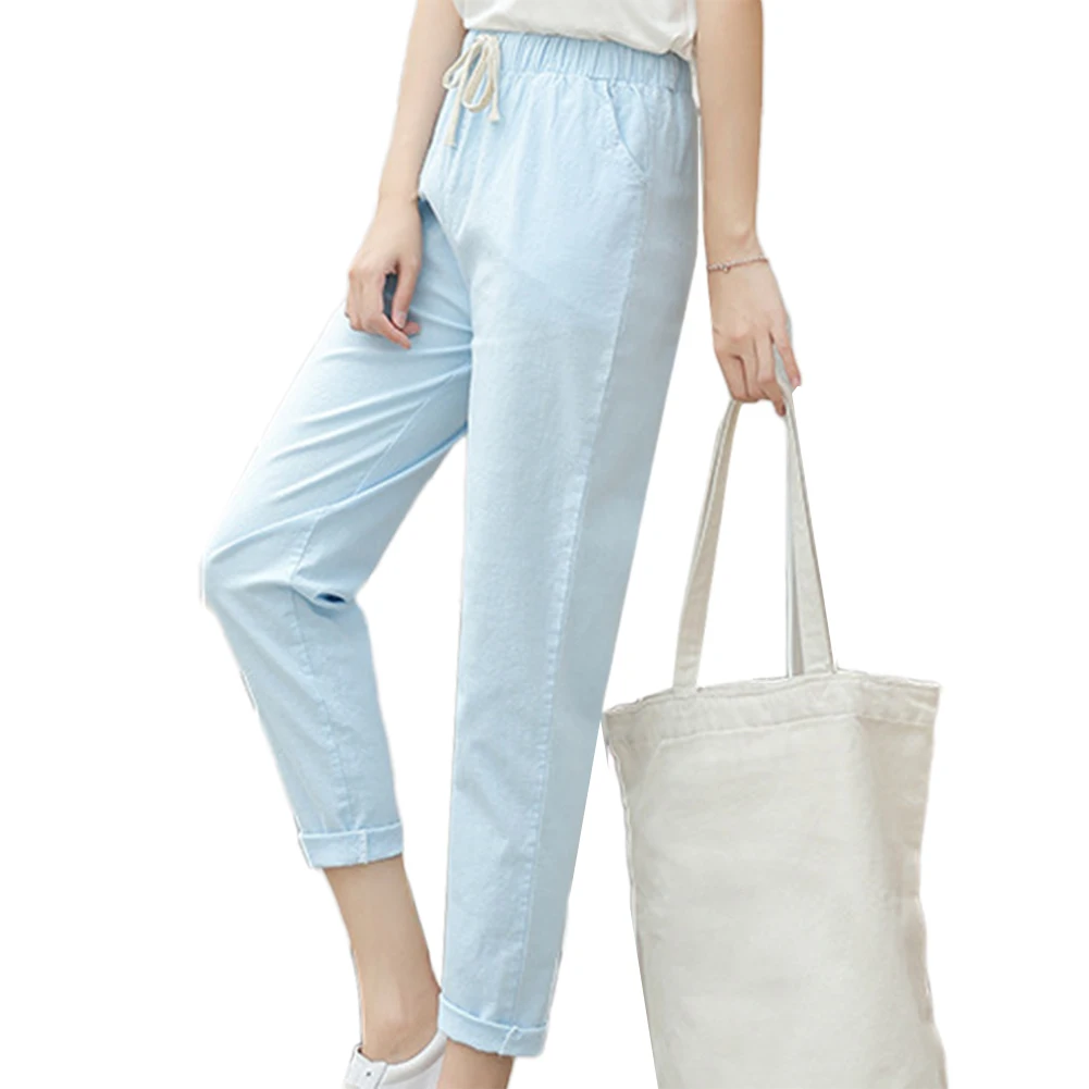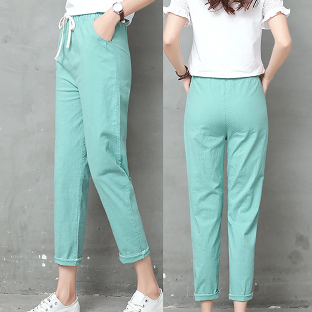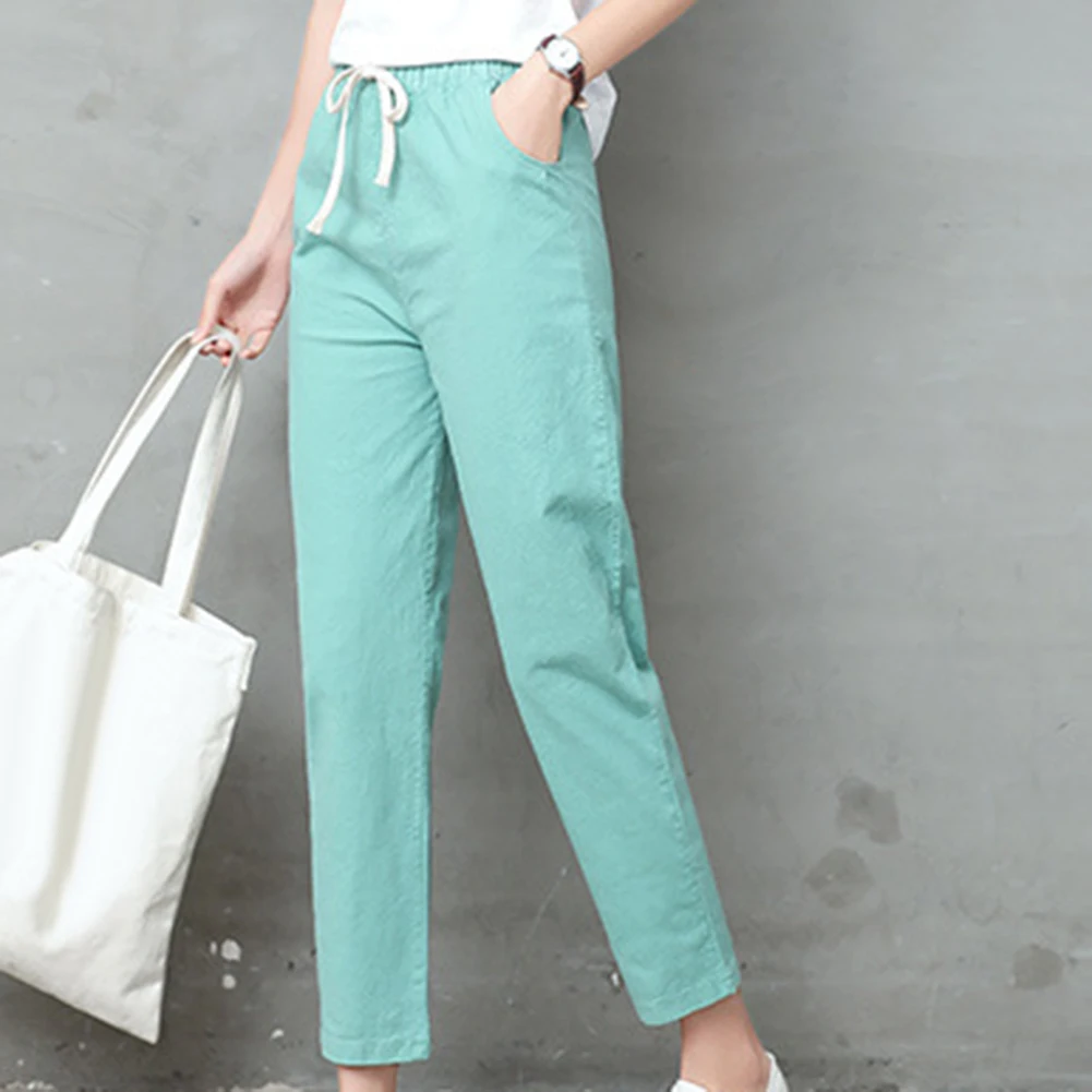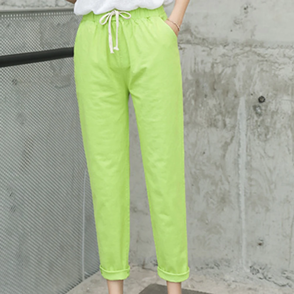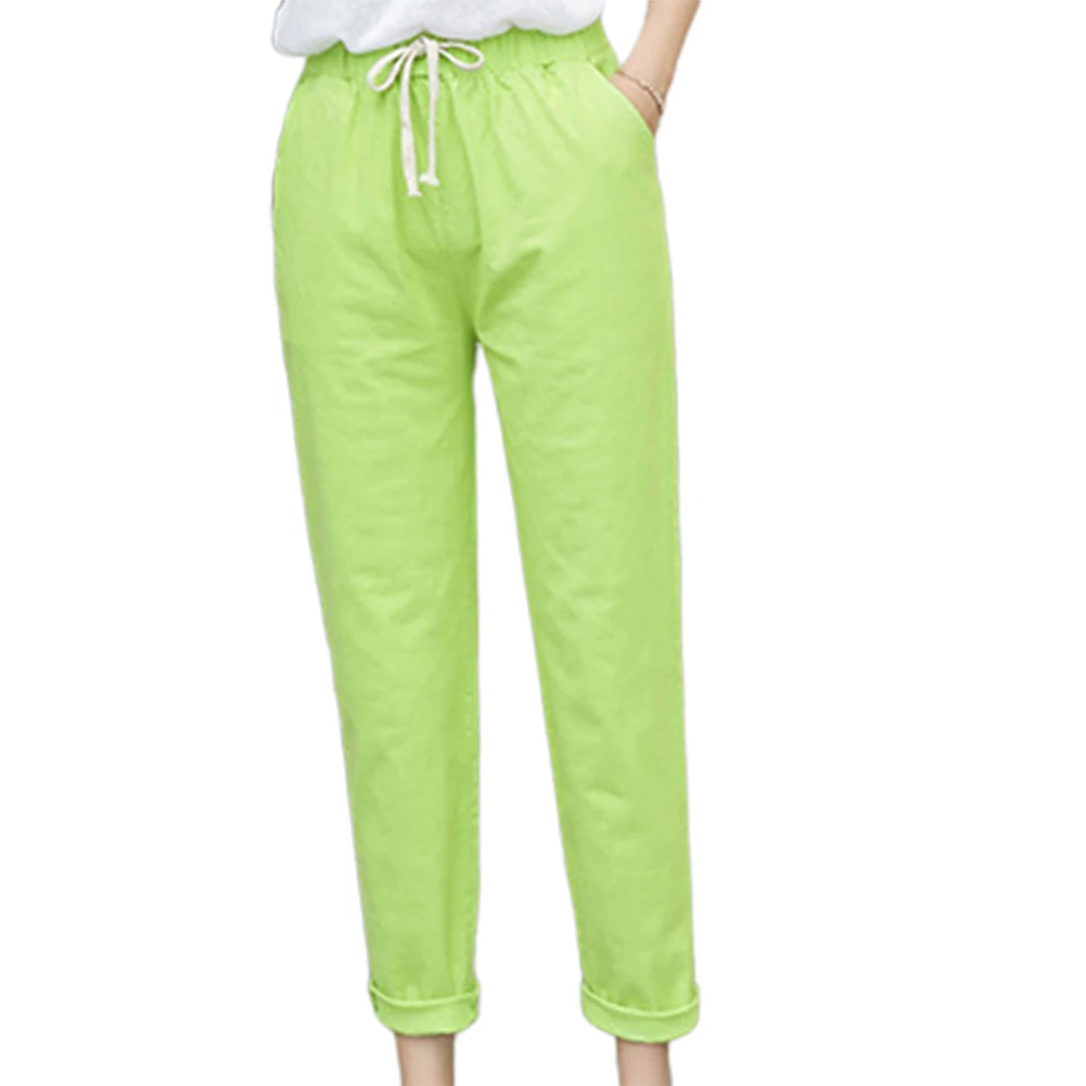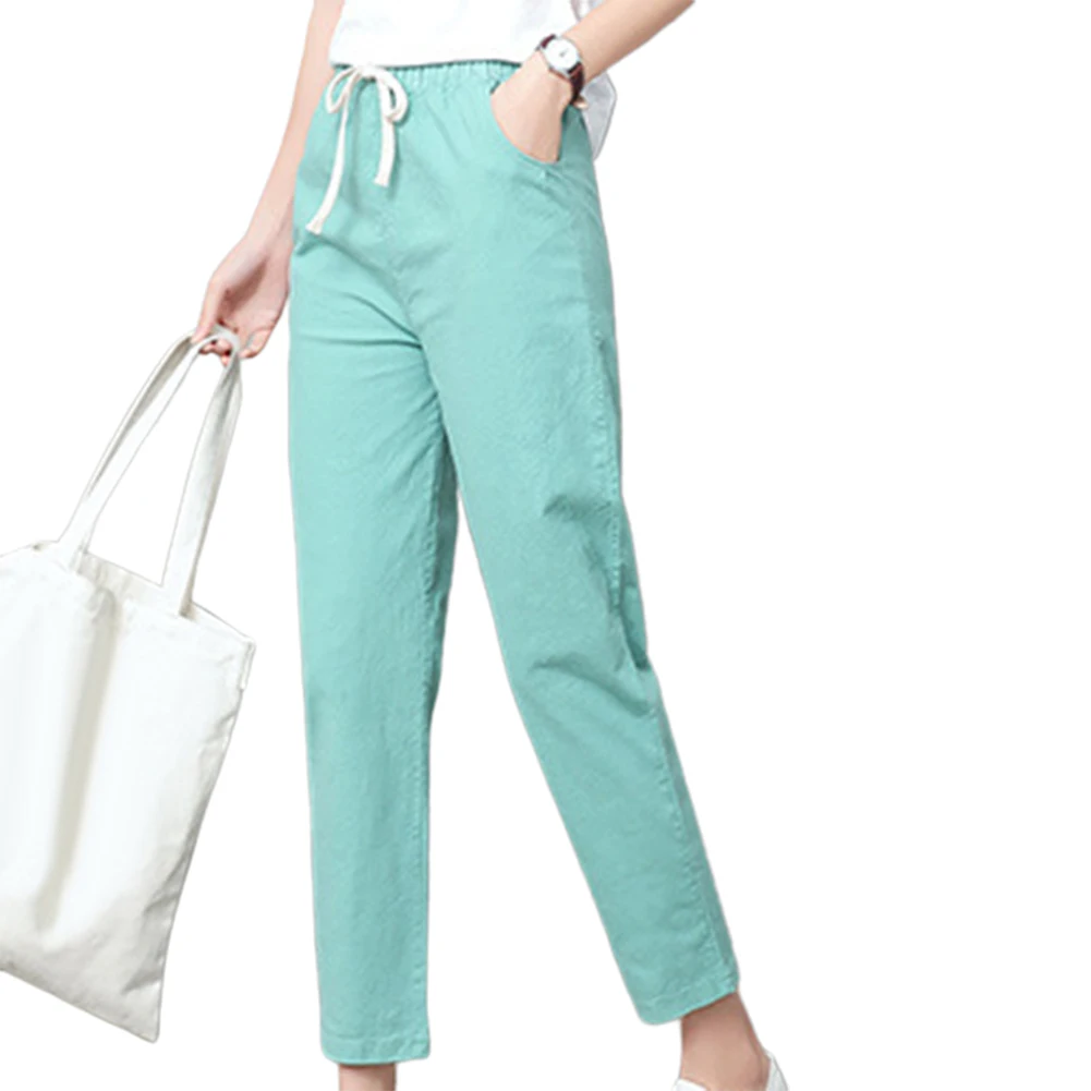 Женские повседневные однотонные хлопковые брюки-карандаш с эластичной резинкой на талии